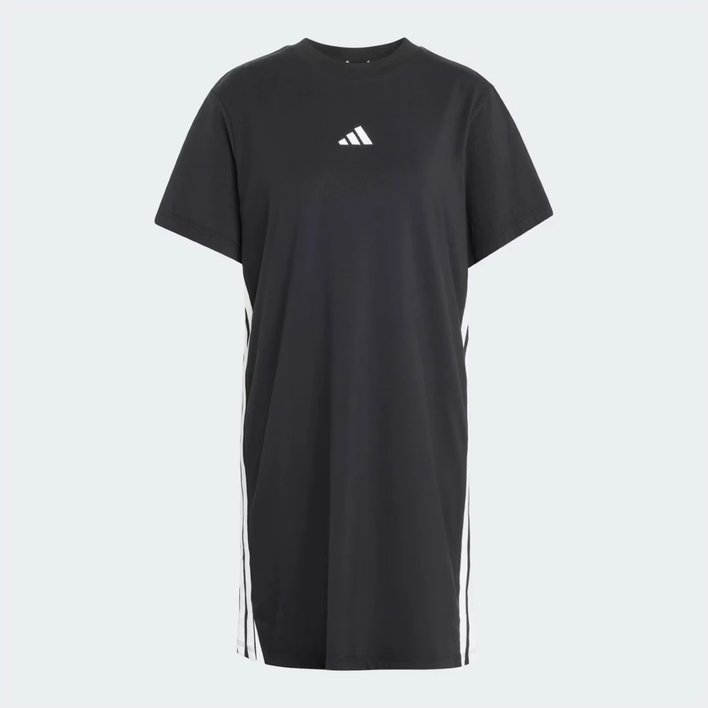 Колекція Adidas Sportswear поєднує в собі стиль та комфорт, створюючи ідеальні вироби для повсякденного носіння та активного способу життя. Плаття Adidas W 3s T Dre — це вдале поєднання витонченого стилю та спортивної свободи, яке точно стане Вашим улюбленим вибором для щоденних пригод. Тканина з бавовною приємна на дотик, добре пропускає повітря та дарує відчуття природного комфорту в теплу погоду. Вільний крій дарує свободу та невимушену посадку, що особливо зручно у щоденному носінні. Чорний колір підкреслений трьома білими смугами з боків і логотипом на грудях — впізнаваний стиль Adidas без зайвих деталей.