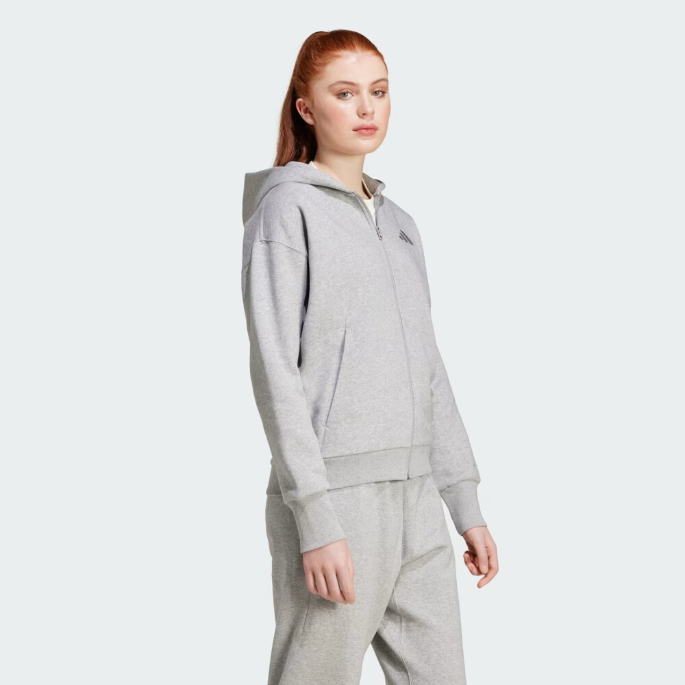 Колекція Adidas Sportswear поєднує в собі стиль та комфорт, створюючи ідеальні вироби для повсякденного носіння та активного способу життя. Кофта Adidas W All Szn Fz Hd відтворює лаконічний дизайн, який з легкістю комбінуватиметься з різним одягом Вашого гардероба. Вона виготовлена з флісової тканини, яка огортатиме Вас затишком, забезпечуючи при цьому стійкість до швидкого зношування. Вільний крій зі спущеними плечовими швами надаватиме багато простору для Ваших рухів, а також сприятиме багатошаровості. Широкі манжети на рукавах та по низу кофти покращуватимуть фіксацію та запобігатимуть втратам тепла. Капюшон надаватиме захист від несприятливих проявів погоди, а бічні кишені вмістять потрібні Вам під час прогулянок дрібнички та зігріють руки. Кофта декорована невеликим логотипом, який підкреслюватиме Вашу прихильність до спортивного стилю бренду. Adidas піклується про зниження впливу на довкілля, тому бавовна виготовлена по програмі Better Cotton Initiative, яка розвиває екологічне бавовництво.