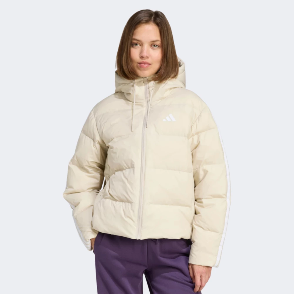 Колекція Adidas Sportswear поєднує в собі стиль та комфорт, створюючи ідеальні вироби для повсякденного носіння та активного способу життя. Пуховик Adidas W Ess 3s P D Ho створений для тих, хто не зупиняється у прохолодну погоду. Він виготовлений з якісного матеріалу, який має водовідштовхувальну обробку для комфортних прогулянок під час легкого дощу чи снігу. Пуховий наповнювач та технологія ClimaWarm подарують Вам приємне тепло, тому ніщо не завадить Вашим планам. Вільний крій ідеально підходить для багатошарових образів, а високий комір і капюшон зі шнурком створюють відчуття затишку. Практичні бічні кишені зігріють руки та збережуть усі необхідні дрібниці під рукою. Завершують образ культові три смужки на рукавах та невеликий логотип — символи Вашої любові до спортивного стилю Adidas, який завжди надихає на рух уперед.