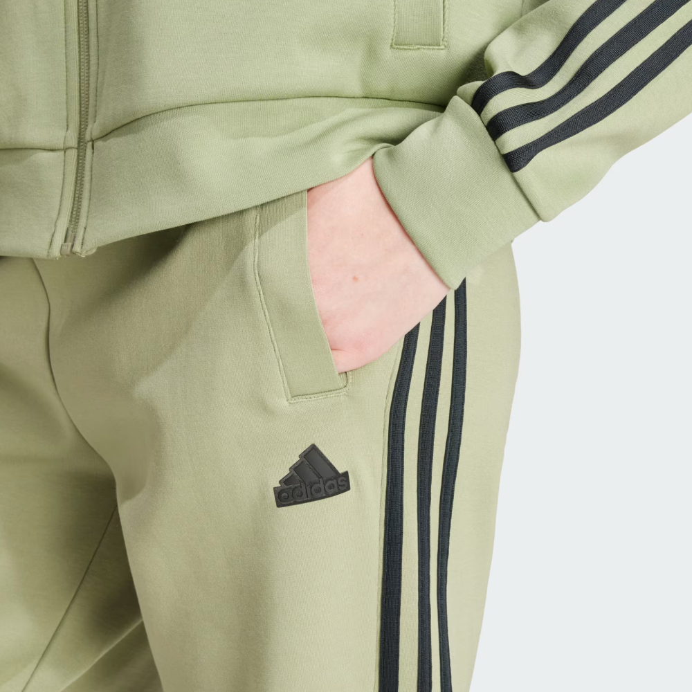 Колекція Adidas Sportswear змішує спорт і стиль, в ній новітні розробки поєднуються з естетичним зовнішнім виглядом та універсальністю. Товари колекції є ідеальним варіантом для тих, хто хоче мати гарний вигляд та почуватись вільно. Спортивні штани Adidas W Fi 3s Reg Pt дозволять створювати невимушені образи для прогулянок містом або активних днів. Вони виготовлені з якісної тканини, яка забезпечуватиме комфорт протягом усього дня. Класичний крій з манжетами знизу штанин надаватиме приємну посадку, не обмежуючи при цьому Ваших рухів. Еластичний пояс із текстильним шнурком надаватиме надійну фіксацію, а бічні кишені дозволять Вам мати при собі корисні дрібнички. Спортивні штани декоровані легендарними смужками та невеликим логотипом. Adidas піклується про зниження впливу на довкілля, тому матеріал виробу щонайменше на 70% є сумішшю перероблених і відновлюваних матеріалів.