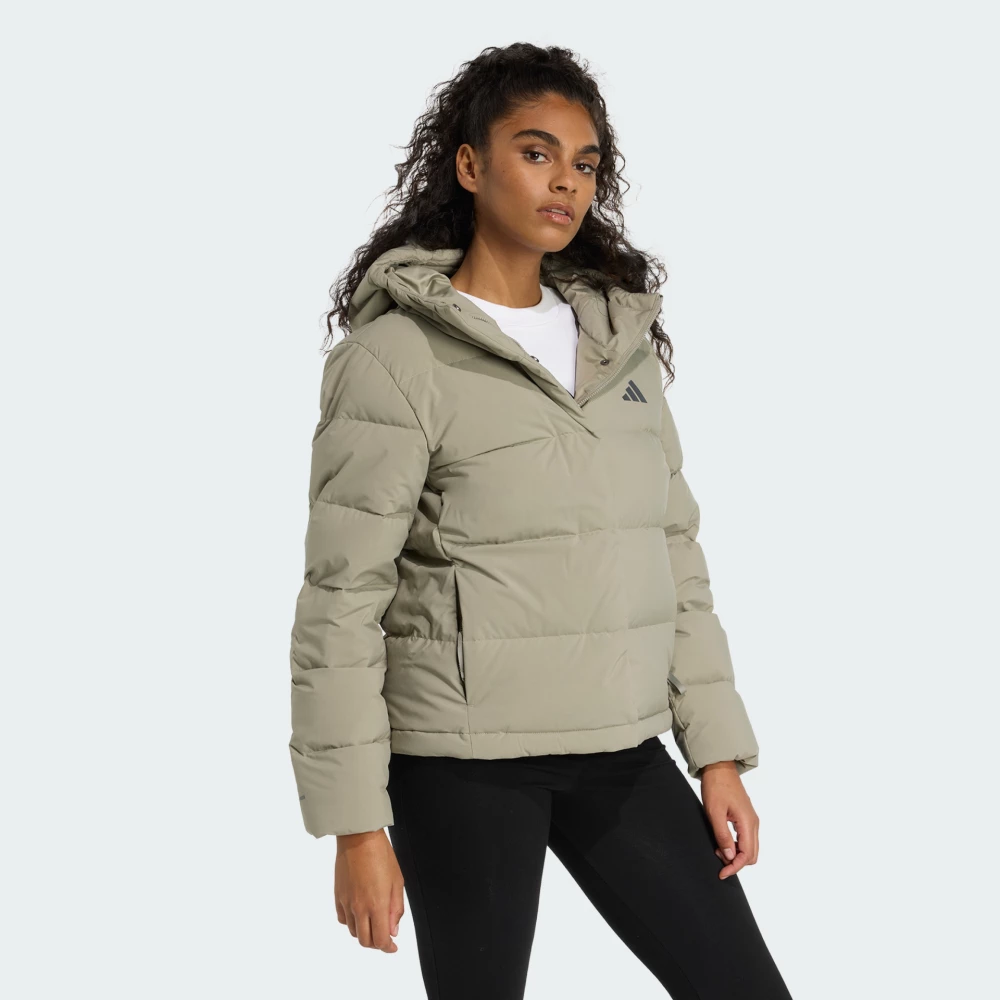 Колекція Adidas Sportswear поєднує в собі стиль та комфорт, створюючи ідеальні вироби для повсякденного носіння та активного способу життя. Пуховик Adidas W Helionic Hd J створений, щоб супроводжувати Вас у прохолодну погоду — від ранкових прогулянок до активних міських пригод. Водовідштовхувальне покриття дозволить Вам не змінювати власних планів та впевнено вирушати вперед, навіть коли за вікном легкий дощ чи сніг. Пуховий наповнювач та технологія ClimaWarm дарують тепло й максимальний комфорт у будь-якому темпі життя. Класичний крій з продуманими деталями сприятиме зручності під час носіння, тоді як штормовий клапан поверх блискавки, високий комір та капюшон захищають від вітру, створюючи відчуття затишку. Бічні кишені на блискавках не лише зігріють Ваші руки, а й дозволять тримати під рукою потрібні дрібнички. Лаконічний дизайн доповнено знаковим логотипом Adidas, який підкреслить Вашу відданість стилю легендарного бренду. Adidas піклується про зниження впливу на довкілля, тому модель виготовлено з використанням перероблених матеріалів.
