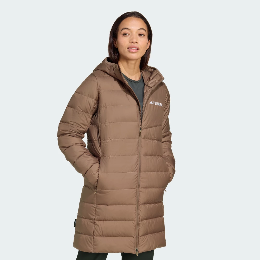 Колекція Adidas Terrex створена для тих, хто живе в ритмі природи та прагне досліджувати світ. У кожному елементі втілено інновації, надійність і турботу про комфорт, аби Ви могли почуватися впевнено у найрізноманітніших умовах — від прогулянки в лісі до підкорення нових маршрутів. Пуховик Adidas W Mt Down Parka стане Вашим надійним супутником у подорожах, прогулянках чи щоденних міських пригодах, даруючи впевненість у будь-яку погоду. Легкий пуховий наповнювач огортає тіло приємним теплом, а водовідштовхувальне покриття захищає від легкого дощу та снігу, що дозволить залишатися в комфорті навіть тоді, коли природа вирішує випробувати Вас. Технологія ClimaWarm підтримує ідеальний мікроклімат, щоб Ви почувалися вільно у своєму темпі — від активного руху до спокійних прогулянок. Подовжений силует із капюшоном додає відчуття безпеки та дозволяє насолоджуватись моментами без жодного дискомфорту. Зручна блискавка з подвійним бігунком додасть зручності під час носіння, а продумані кишені збережуть усе необхідне під рукою. Лаконічний логотип Terrex стане символом Вашої любові до руху, пригод і життя без меж. Adidas піклується про зниження впливу на довкілля, тому модель виготовлено з використанням перероблених матеріалів.