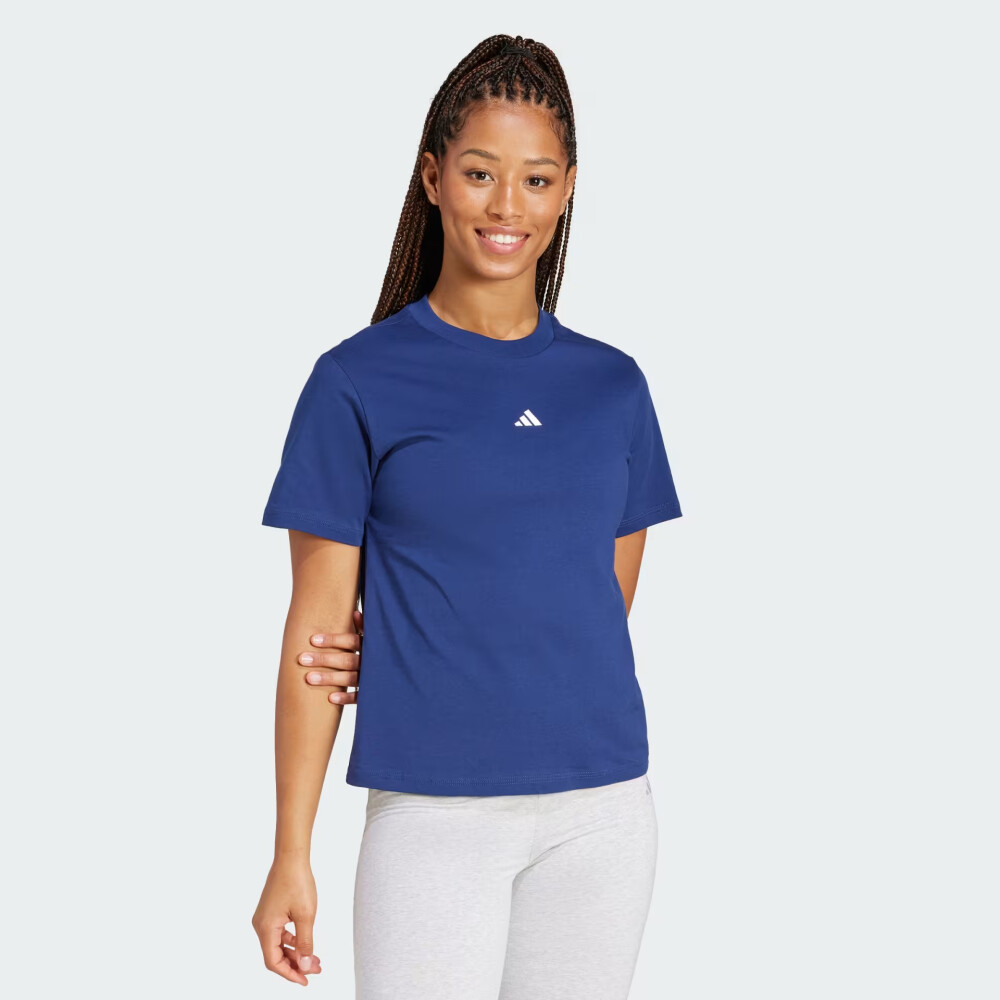 Колекція Adidas Sportswear поєднує в собі стиль та комфорт, створюючи ідеальні вироби для повсякденного носіння та активного способу життя. Футболка Adidas W Sl Sj T стане базовим елементом Вашого гардероба, оскільки легко поєднується з будь-яким одягом для створення стильних невимушених образів. Вона виготовлена з якісної бавовняної тканини, яка огортатиме Вас комфортом протягом усього дня. Класичний крій не сковуватиме Ваших рухів, а кругла горловина та м’яка внутрішня стрічка дозволятимуть Вам повністю зануритися в насичений день, не відволікаючись на дрібниці. Насичений синій колір футболки додаватиме яскравості у Ваші образи, а невеликий логотип Adidas додаватиме їм спортивної естетики.