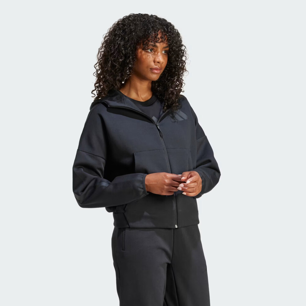 Колекція Adidas Sportswear змішує спорт і стиль, в ній новітні розробки поєднуються з естетичним зовнішнім виглядом. Преміальна серія Z.N.E. натхненна справжнім моментом та дозволить з комфортом проживати навіть найактивніші дні. Кофта Adidas W Z.N.E. Fz натхненна лініями ігрового поля, тому демонструватиме Вашу прихильність до спортивної спільноти. Вона виготовлена з тришарової тканини Primeknit, яка відмінно зберігатиме тепло, тому Ви відчуватимете себе затишно у будь-яку погоду. Вільний крій з продуманими лініями дизайну надаватиме достатньо простору для Ваших рухів, що подарує Вам комфорт та впевненість навіть під час активної діяльності або багатошарових поєднань в образі. Капюшон захистить від несприятливих проявів погоди, а бічні кишені дозволять мати при собі корисні та цінні дрібнички. Кофта декорована невеликим логотипом, який підкреслюватиме Вашу відданість спортивному стилю бренду. Adidas піклується про зниження впливу на довкілля, тому матеріал виробу щонайменше на 70% складається з переробленого та відновлюваного вмісту.