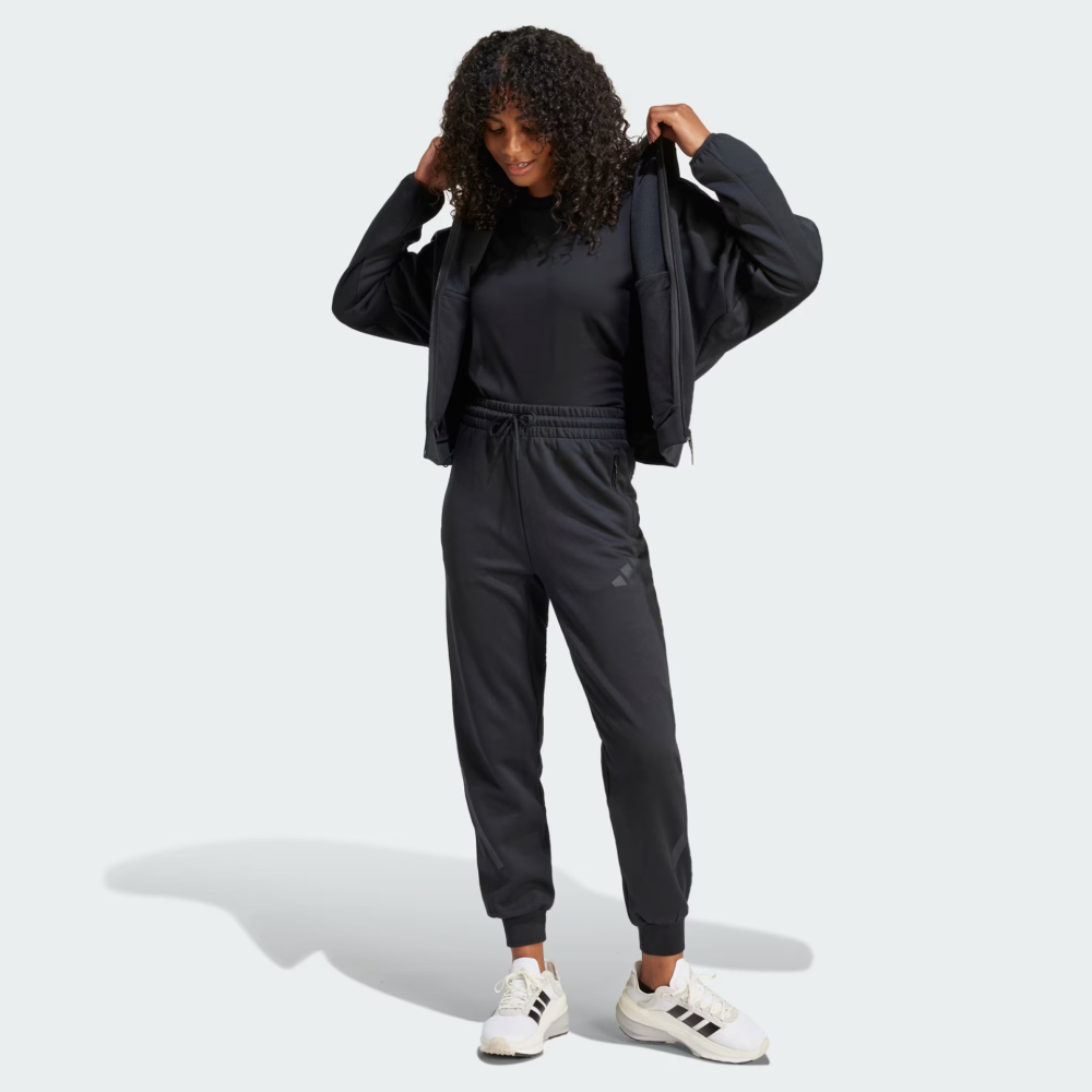 Колекція Adidas Sportswear змішує спорт і стиль, в ній новітні розробки поєднуються з естетичним зовнішнім виглядом. Преміальна серія Z.N.E. натхненна справжнім моментом та дозволить з комфортом проживати навіть найактивніші дні. Спортивні штани Adidas W Z.N.E. Pt натхненні лініями ігрового поля, тому демонструватиме Вашу прихильність до спортивної спільноти. Вони виготовлені з тришарової тканини Primeknit, яка відмінно зберігатиме тепло, даруючи відчуття затишку у прохолодну погоду. Вільний крій надаватиме достатньо простору для Ваших рухів, а манжети знизу штанин та еластичний пояс із текстильним шнурком забезпечуватимуть приємну та надійну посадку. Бічні кишені на блискавках дозволять Вам завжди мати при собі корисні речі, такі як ключі та телефон, додаючи практичності до Ваших щоденних образів. Штани декоровано невеликим логотипом, який підкреслюватиме Вашу відданість спортивному стилю бренду. Adidas піклується про зниження впливу на довкілля, тому модель виготовлено з використанням перероблених матеріалів.