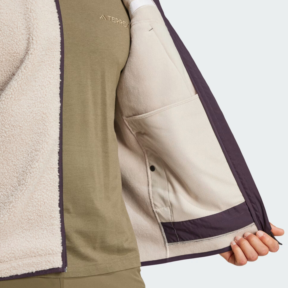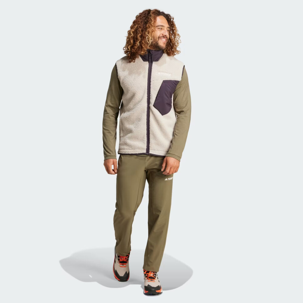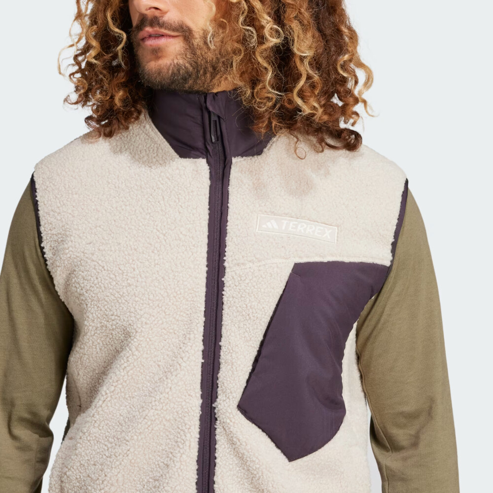 Колекція Adidas Terrex створена для любителів активного відпочинку на природі. Кожен елемент колекції виготовлений з урахуванням найвищих стандартів якості та функціональності, що гарантує комфорт у будь-яких умовах. Куртка-жилет Adidas Xpl Hp Fl Vst дозволить Вам впевнено вирушати на зустріч новим пригодам. Він виготовлений з флісу з високим ворсом ззовні та м’яким полярним флісом усередині, тому відмінно зберігатиме тепло, незалежно від того, подорожуєте Ви в горах чи блукаєте містом. Класичний крій жилета не сковуватиме Ваших рухів, а зручні для рюкзака плечові шви дозволятимуть комфортно носити спорядження. Нагрудна на блискавці та бічні кишені забезпечуватимуть зберігання корисних дрібничок, які завжди мають бути під рукою. Куртка-жилет декорована нашивкою з логотипом, що підкреслюватиме Вашу прихильність до стилю Terrex. Adidas піклується про зниження впливу на довкілля, тому модель виготовлено зі 100% перероблених матеріалів, що є лише одним з рішень, які допомагають покласти край пластиковим відходам.