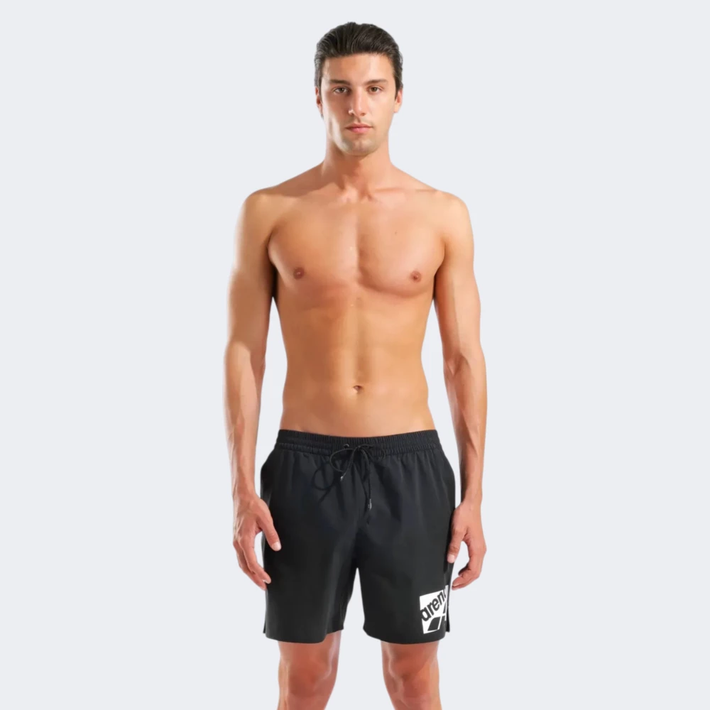 Arena LOGO BOXER — шорти для активного відпочинку на воді, створені для легкості та впевнених рухів улітку. Легкий швидковисихаючий поліестер забезпечує зносостійкість, простий догляд і стабільну форму впродовж тривалого носіння. Класичний вільний крій із вирізами з боків не сковує рухів, а еластичний пояс зі шнурком дозволяє точно налаштувати посадку під Ваш комфорт. Оптимальна довжина вище коліна дарує свободу під час плавання, ігор на пляжі чи прогулянок біля води. Дві бічні кишені та задня кишеня допоможуть тримати під рукою необхідні дрібниці. Чорний колір підкреслює лаконічний силует, а великий контрастний білий логотип Arena додає впізнаваного спортивного акценту; невеликий блакитний ярлик ззаду завершує образ. Обирайте LOGO BOXER для щоденного літнього драйву біля води — функціонально, стильно та з комфортом у кожному русі.