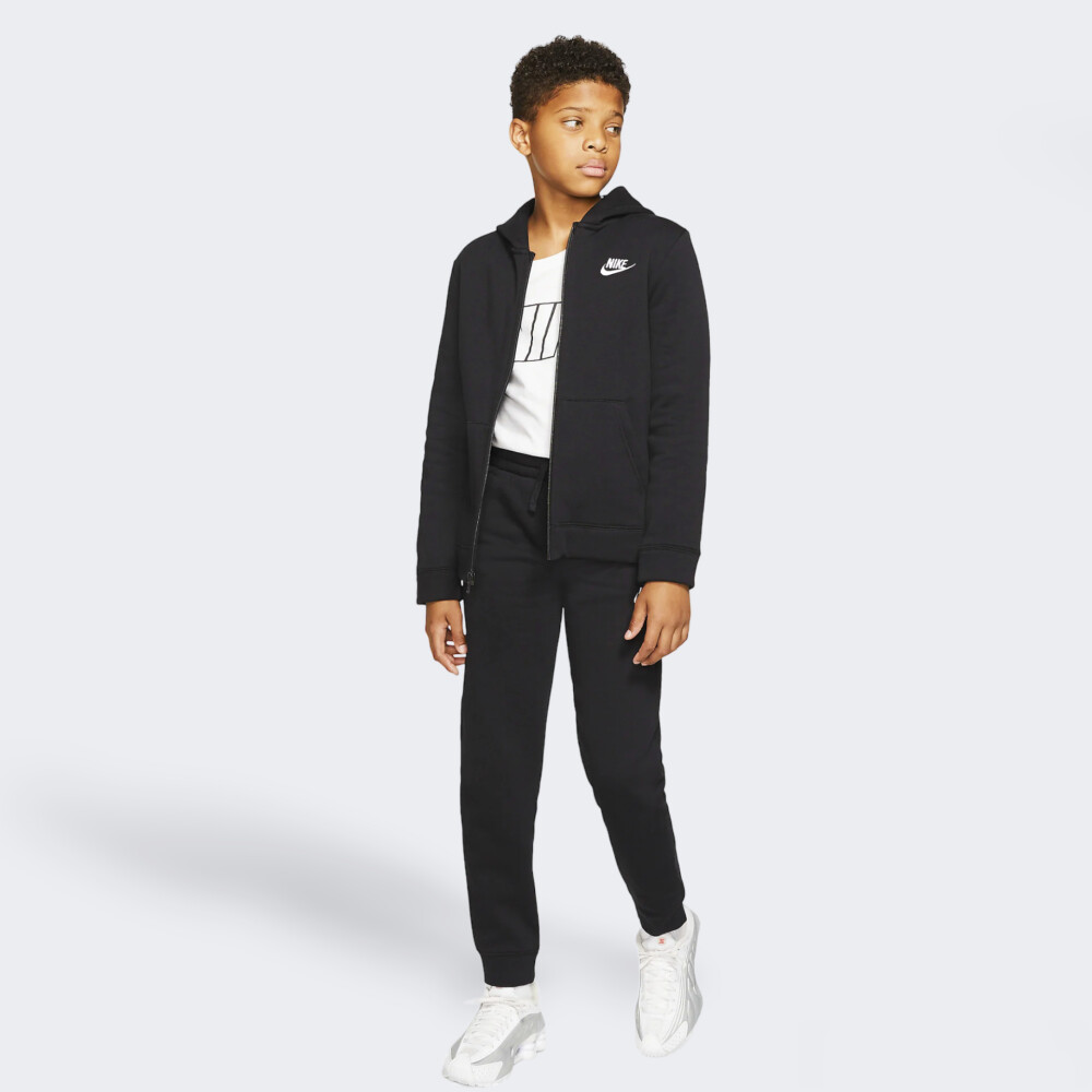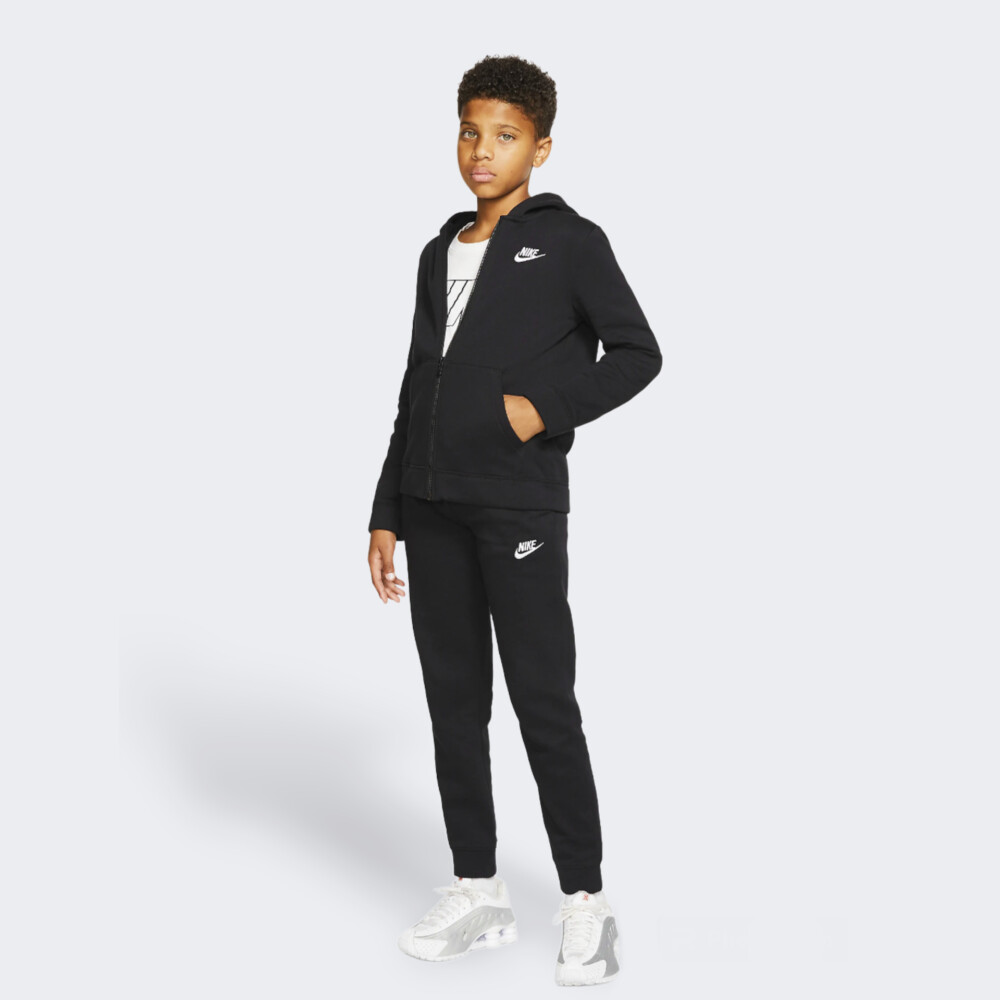 Спортивний костюм Nike U Nsw Trk Suit Core Bf подарує Вашій дитині відчуття затишку у прохолодні дні. Він виготовлений з флісового матеріалу, який відмінно зберігає тепло та має гіпоалергенні властивості. Класичний крій не сковуватиме рухів Вашої дитини, а зручні манжети на рукавах, по низу кофти та штанин покращуватимуть фіксацію. Кишені дозволять мати при собі корисні дрібнички та зігріти руки, коли виникне така потреба. Кофта має капюшон, який захистить від несприятливих проявів погоди. Штани мають еластичний пояс з текстильним шнурком, що гарантує надійну посадку та фіксацію. Спортивний костюм декоровано невеликими логотипами, щоб підкреслити спортивний стиль Вашої дитини. Модель рекомендована для дітей віком від 7 до 15 років.