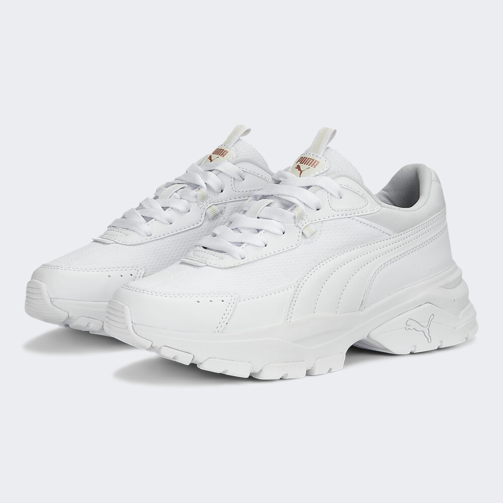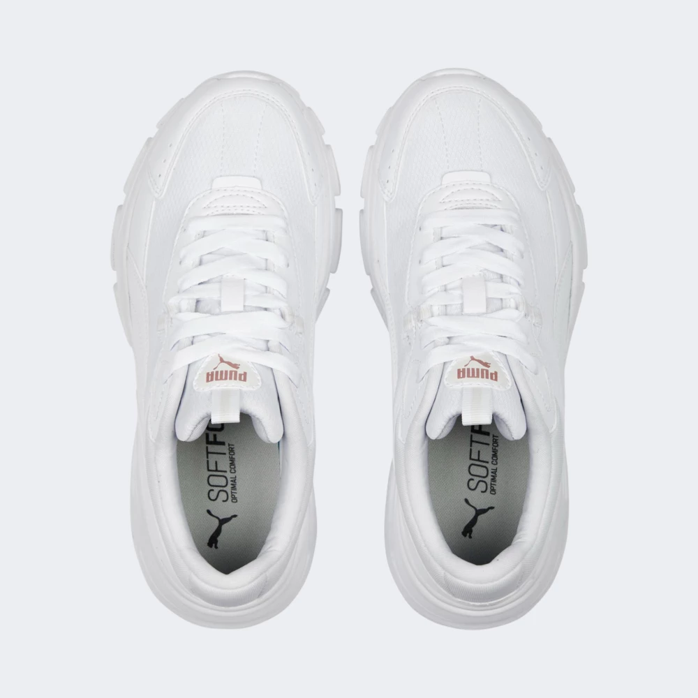 Кросівки Puma Cassia Via мають масивний силует, який поєднує сучасний та ретро стилі з ніжними жіночими деталями дизайну. Вони мають верх з ріпстопу, синтетичної тканини зі спеціальним міцним плетінням, та накладок зі штучної шкіри, що робить їх стійкими до зношування. М'яка устілка SoftFoam подарує комфорт на весь день. Висока проміжна підошва Imeva забезпечуватиме амортизацію та надаватиме пружності кожному Вашому кроку, створюючи при цьому неймовірно стильний вигляд. Гумова рельєфна підметка зі спеціальними канавками гарантуватиму гнучкість та відмінне зчеплення. Кросівки задають модні тренди для прогулянок на свіжому повітрі, а логотип та фірмові смужки Formstrip підкреслять Вашу прихильність до вуличного стилю Puma.