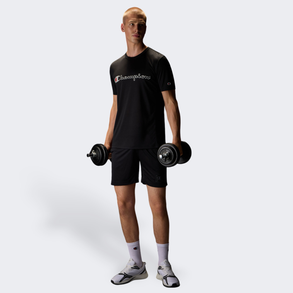 - Входить в фільтри:для занять спортом, для тренувань, для залу, для фітнесу, однотонні, з написом, до ліктя, всі футболки Champion, всі товари Champion