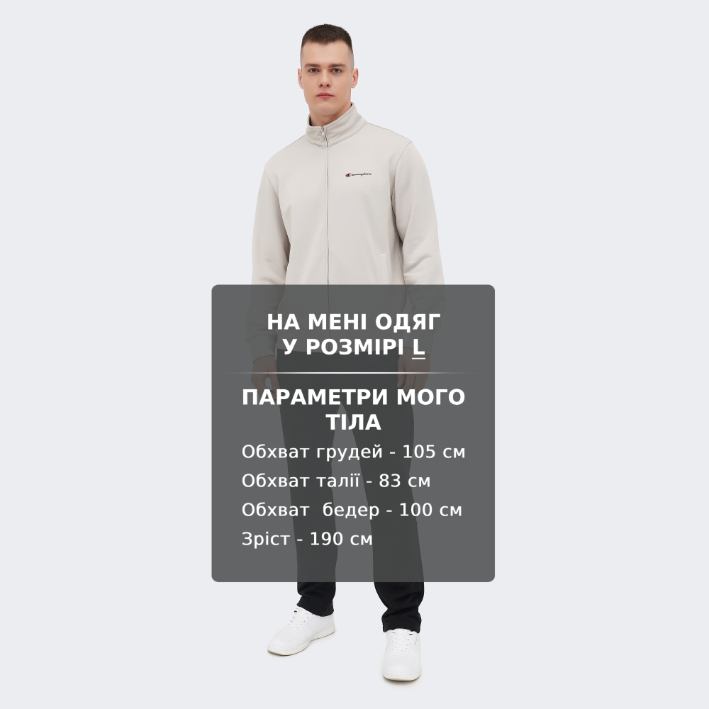 Спортивний костюм Champion Full Zip Suit поєднує у собі витончену класику, перевірену часом, та сучасний комфорт, створюючи ідеальний варіант для будь-якого моменту Вашого активного життя. Він виготовлений з м'якої, приємної на дотик тканини, тому дарує неперевершене відчуття комфорту, дозволяючи насолоджуватися кожною миттю без обмежень. Класичний крій з еластичними манжетами на рукавах, по низу кофти та штанин гарантує зручну посадку, забезпечуючи легкість і впевненість у кожному русі. Кишені дозволяють завжди мати при собі корисні та цінні дрібнички, які можуть знадобитись будь-якої миті. Кофта на блискавці по всій довжині з високим коміром зробить Вас готовим до несподіваних змін погоди. Штани з еластичним поясом та внутрішнім шнурком гарантують надійну фіксацію незалежно від інтенсивності Вашого дня. Стильне поєднання бежевого та чорного кольорів разом із легендарними логотипами Champion додають образу впевненості, динаміки та підкреслюють Вашу любов до спортивного стилю бренду, який завжди залишається актуальним.