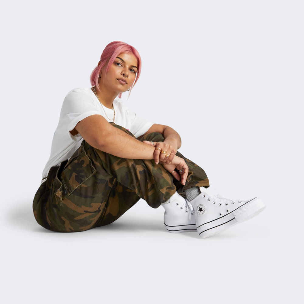 В далекому 1918 році відомий, на той час, баскетболіст Чарльз Х. Тейлор («Чак») почав співпрацю з Converse. У середині 50-х років його лінійка стала улюбленою серед баскетболістів США. З того часу дизайн змінювався та вдосконалювався, проте зберіг класичний силует, який так сподобався шанувальникам вуличного стилю. Кеди Converse Chuck Taylor All Star Lift були натхненні культовими образами жіночих груп 90-х. Верх виготовлено зі шкіри преміумкласу, яка подарує відчуття комфорту протягом усього дня. Завищений силует та щільна шнурівка гарантуватимуть відмінну фіксацію стопи. Підошва, висотою 4 см, з вулканізованої гуми забезпечує особливу гнучкість та стійкість до зношування. Дизайн моделі доповнено культовою нашивкою з логотипом, яка підкреслить її колекційність.