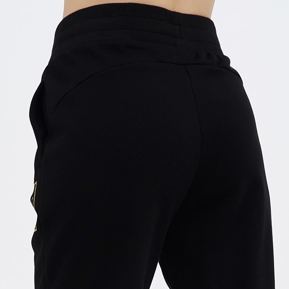 Holiday Women's Sweatpants - жіночі спортивні штани з трикотажної тканини french terry. Декоровані принтованими логотипами зпереду та ззаду брюк (золотистого або сріблястого кольору). Бічні кишені зручні для зберігання речей. Низ штанин оформлений манжетами в рубчик. Пояс - на внутрішній кулісці. На розмір М довжина штанів за зовнішнім швом - 99,2 см, за внутрішнім - 73 см.