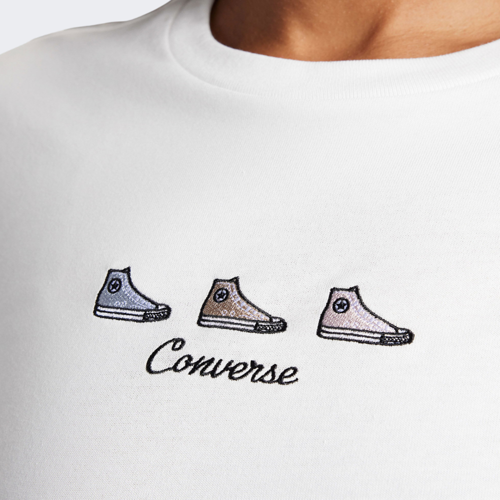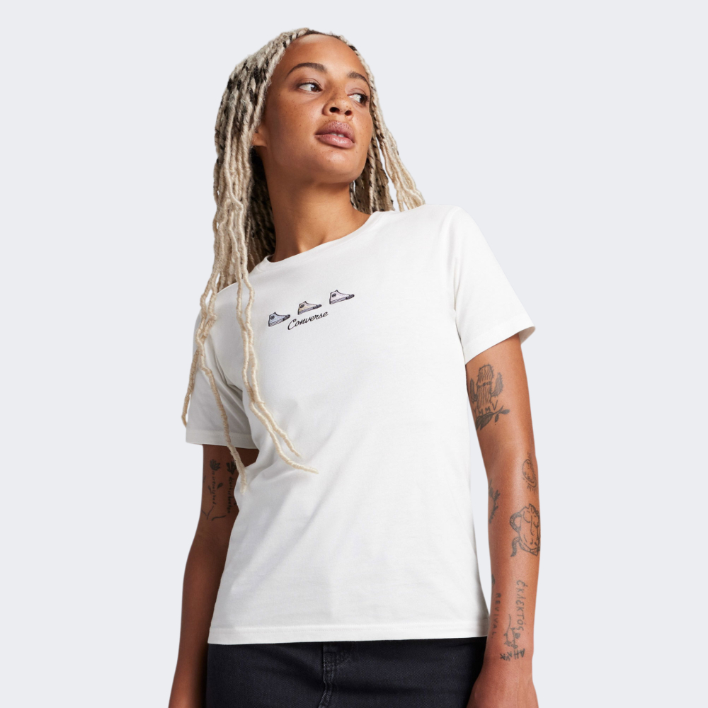 Футболка Converse Chuck Taylor Graphic Tee — це справжнє втілення вуличної свободи, бунтарського духу та прагнення до самовираження. Вона виготовлена з м'якої бавовняної тканини, яка є приємною до тіла та дозволяє шкірі дихати, навіть коли день сповнений руху. Завдяки класичному крою й круглій горловині з м’якою внутрішньою стрічкою, футболка гарантує зручність без натирання чи подразнення, щоб Ви могли зосередитись на важливому — на власному стилі та комфорті. Вишиті зображення культових моделей бренду та невеликий напис Converse додадуть вишуканої вуличної естетики у Ваші образи.