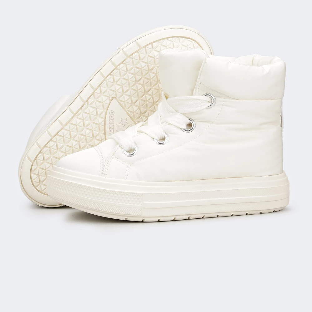 У 1918 році харизматичний баскетболіст Чарльз Х. Тейлор розпочав співпрацю з Converse — союз, який перетворив звичайне спортивне взуття на ікону стилю. З того часу дизайн кедів постійно вдосконалювався, але зберіг легендарний силует, що полонив серця шанувальників вуличної моди в усьому світі. Черевики Converse Chuck Taylor Womens створене для сучасних жінок, які не зупиняються на півдорозі. Вони ідеально підходять для перехідного сезону, коли хочеться відчувати тепло, залишаючись при цьому вірною своєму унікальному стилю. Міцний текстильний верх із водовідштовхувальним покриттям захищає від легкого дощу й вологи, а пуховий дизайн і м’яка флісова підкладка огортають приємним затишком навіть у найпохмуріші дні. Амортизаційна устілка OrthoLite забезпечує максимальний комфорт, дозволяючи відчувати легкість кожного кроку навіть після тривалих прогулянок. Завищений силует і об’ємна шнурівка додають образу виразності та гарантують надійну фіксацію стопи. Зносостійка підошва з рельєфним малюнком забезпечує зчеплення, дозволяючи впевнено крокувати містом. І, звісно, легендарні логотипи All Star — це не просто деталь, а символ свободи, самовираження й тієї енергії, яка робить Converse впізнаваними у всьому світі.