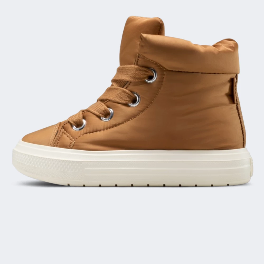 У 1918 році харизматичний баскетболіст Чарльз Х. Тейлор розпочав співпрацю з Converse — союз, який перетворив звичайне спортивне взуття на ікону стилю. З того часу дизайн кедів постійно вдосконалювався, але зберіг легендарний силует, що полонив серця шанувальників вуличної моди в усьому світі. Черевики Converse Chuck Taylor Womens створене для сучасних жінок, які не зупиняються на півдорозі. Вони ідеально підходять для перехідного сезону, коли хочеться відчувати тепло, залишаючись при цьому вірною своєму унікальному стилю. Міцний текстильний верх із водовідштовхувальним покриттям захищає від легкого дощу й вологи, а пуховий дизайн і м’яка флісова підкладка огортають приємним затишком навіть у найпохмуріші дні. Амортизаційна устілка OrthoLite забезпечує максимальний комфорт, дозволяючи відчувати легкість кожного кроку навіть після тривалих прогулянок. Завищений силует і об’ємна шнурівка додають образу виразності та гарантують надійну фіксацію стопи. Зносостійка підошва з рельєфним малюнком забезпечує зчеплення, дозволяючи впевнено крокувати містом. І, звісно, легендарні логотипи All Star — це не просто деталь, а символ свободи, самовираження й тієї енергії, яка робить Converse впізнаваними у всьому світі.