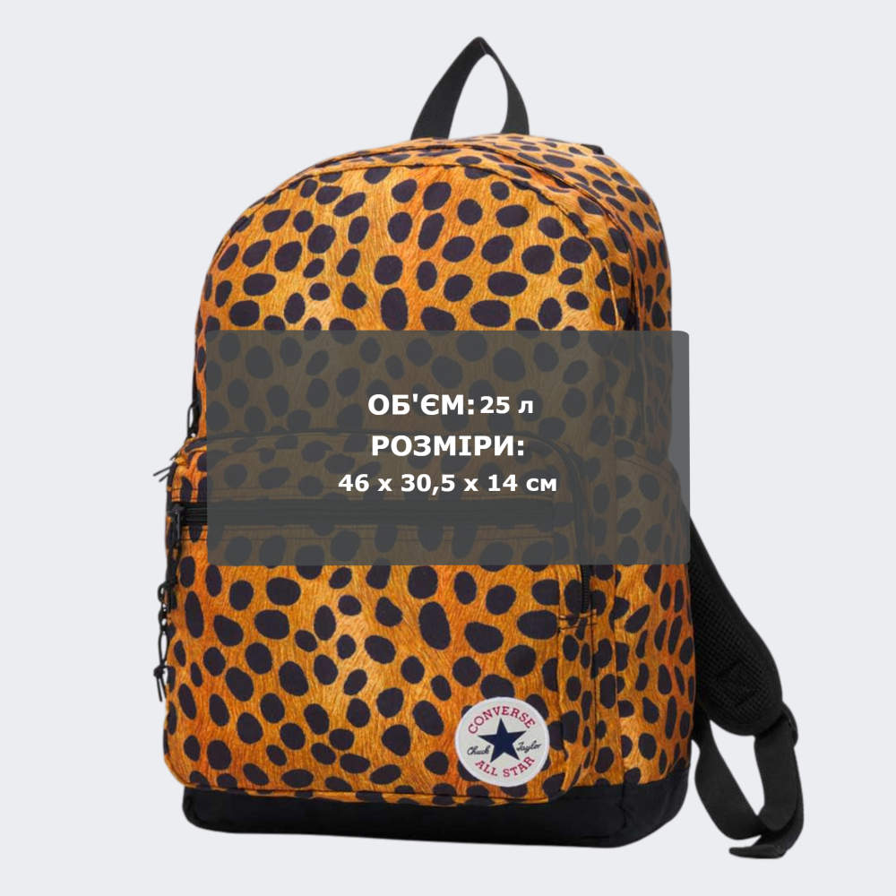 Лінійка Converse All Star — це легенда, що народилась на баскетбольному майданчику у 1917 році та стала іконою вуличної моди. З часом бренд розширився, доповнивши асортимент одягом і аксесуарами, які стали символом свободи, самовираження та молодіжного духу. Рюкзак Converse Go 2 Luxe Aop Backpack створений для тих, хто не боїться бути сміливим, яскравим і справжнім. Він — як вибух характеру, що розриває рамки звичного, додає образу сили та зухвалості. Кожна деталь створена, щоб підкреслити Вашу індивідуальність, де б Ви не були — у вирі міських вулиць чи в дорозі до нових пригод. Виготовлений зі зносостійкого матеріалу, тому рюкзак витримає будь-який ритм життя — навчання, роботу, подорожі, тренування. Просторе основне відділення має окрему кишеню для ноутбука, яка надійно захистить Вашу техніку. Зовнішні додаткові кишені стануть ідеальним місцем для дрібниць, які завжди мають бути під рукою. М’які, ергономічні плечові ремені регулюються індивідуально, забезпечуючи зручну посадку навіть під час тривалого носіння, зменшуючи навантаження на плечі та даруючи максимум комфорту. Тваринний принт із текстурою "під шкіру", що ніби розповідає історію про подорож у дикі місця, де Ви — головний герой. Логотип Converse All Star демонструє Вашу любов до класики, яка не підвладна часу, навіть у найсміливішому вигляді.
