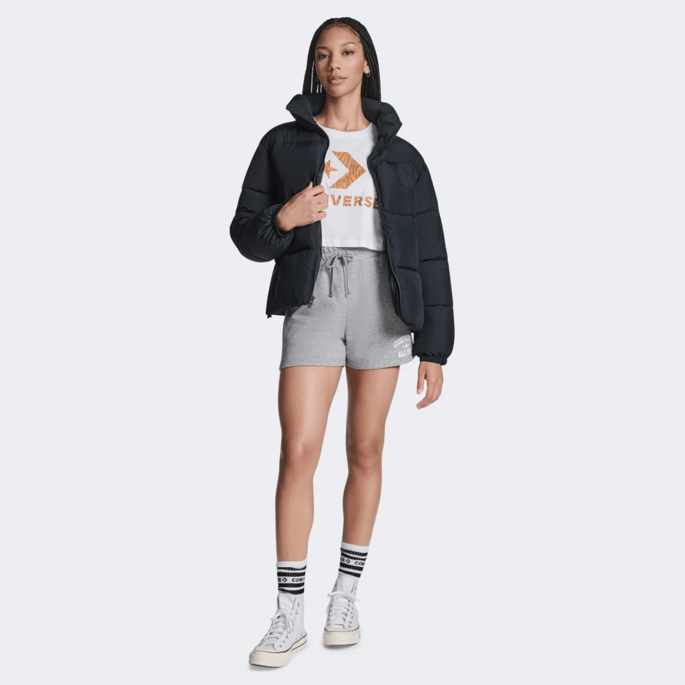 Куртка Converse Jacket створена для днів, коли потрібно залишатися в русі незалежно від погоди. Вона стане надійним супутником під час прогулянок, поїздок чи активних справ, даруючи відчуття впевненості та абсолютного комфорту. Модель виготовлена з якісних матеріалів та оснащена легким синтетичним утеплювачем, який чудово утримує тепло й не обтяжує рухи. Класичний крій зі шнурком знизу дозволяє ідеально підлаштувати посадку під Ваш стиль — більш приталеному або у вільнішому форматі, що особливо зручно для багатошарових образів. Високий комір формує додатковий захист від вітру та холодних поривів, додаючи впевненості, що погода не стане перешкодою Вашому дню. Блискавка по всій довжині забезпечує зручність, адже дає можливість регулювати рівень тепла залежно від темпу життя. Глибокі бічні кишені зігріють руки та надійно збережуть дрібниці, які завжди потрібні поруч. Якщо сонце раптово вигляне й стане тепліше, то спеціальні ремінці для перенесення дозволять легко носити куртку на плечах, не займаючи руки й не створюючи дискомфорту. Легендарна нашивка Converse All Star підкреслює Вашу відданість міському стилю та свободі руху.