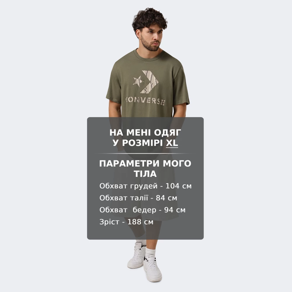 Футболка Converse Standard Fit Center Front Large Logo Star Chev Ss Tee — це стиль, який ніколи не виходить із моди. Вона створена для тих, хто цінує впевненість у кожному русі, комфорт у кожній деталі й автентичність легендарного бренду. Футболка виготовлена з м’якої бавовни, що дарує шкірі приємні відчуття протягом усього дня — від активного ранку до вечірнього відпочинку. Класичний крій гарантує свободу рухів, тож ніщо не завадить Вашим пригодам. Круглий виріз із м’якою внутрішньою стрічкою дбайливо оберігає шкіру, запобігаючи натиранню навіть під час тривалого носіння. Це ідеальна база для створення щоденних образів — футболка легко поєднується з джинсами, спортивними штанами чи шортами, додаючи лаконічності та впевненості будь-якому стилю. Великий логотип Star Chev з абстрактним принтом підкреслить Вашу відданість Converse — бренду, що вже давно став символом свободи та культового стилю.