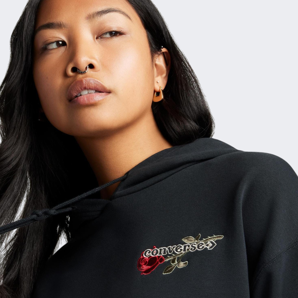 Кофта Converse Tlmn Vday Essentials Ft Hoodie поєднує романтичну естетику з бунтівним духом вулиць, дозволяючи Вам бути собою — сміливою, чуттєвою, справжньою. Виготовлена з м’якої на дотик тканини french terry, вона огортає комфортом з ранку до вечора — будь це прогулянка, зустріч із друзями чи день, сповнений руху. Вільний, злегка вкорочений крій зі спущеними плечима не обмежує рухів і виглядає невимушено стильно. Капюшон із текстильним шнурком стане надійним захистом від раптового вітру, а зручна кишеня-кенгуру вмістить важливі дрібнички та зігріє руки у прохолодні дні. Стильний акцент дизайну — вишита червона троянда на грудях. Вона ніби проростає крізь символ свободи та молодіжного духу Converse, розповідаючи без слів про пристрасть, ніжність і характер. Кофта ідеально пасуватиме до улюблених джинсів, легінсів або спідниці — створюючи образ, у якому хочеться закохуватись у життя.