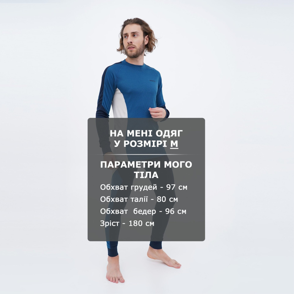 Комплект термобілизни Craft Core Dry Baselayer Set M використовується як базовий шар одягу та призначений для тих, хто полюбляє зимові види спорту та активний відпочинок. Виготовлений з м’якого трикотажу, що подарує Вам приємне відчуття тепла та сухості. Матеріал має відмінну теплопровідність та гарантує ефективне відведення вологи з поверхні шкіри, що дозволить вберегтись від переохолодження або можливого перегріву. Плоскі шви повторюють рухи тіла, а також запобігають подразненню шкіри. Комплект має приталений крій, який добре облягає, не обмежуючи при цьому Ваших рухів. Кофта має круглу горловину та рукава реглан, а лосини мають еластичний пояс для надійної посадки. Логотипи підкреслять якість комплекту. Craft піклується про зниження впливу на довкілля, тому матеріал містить перероблені волокна.