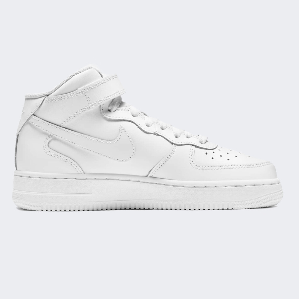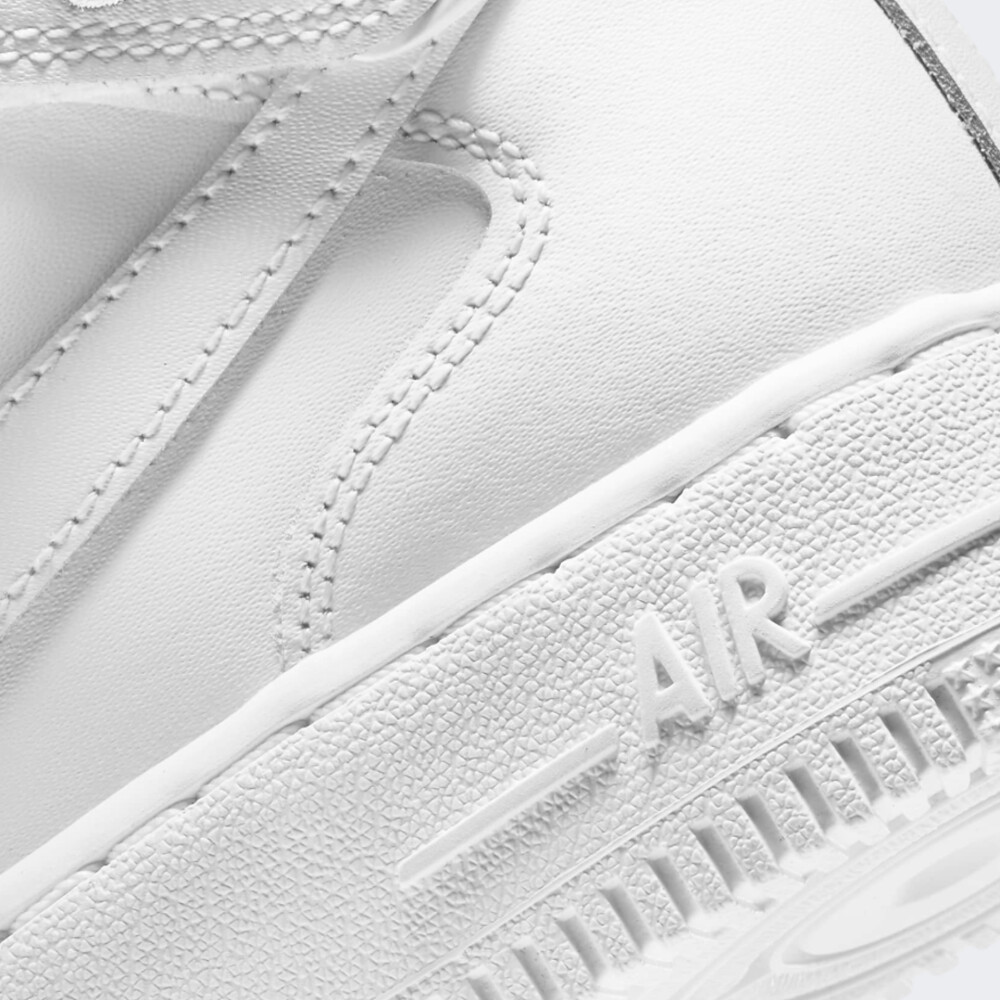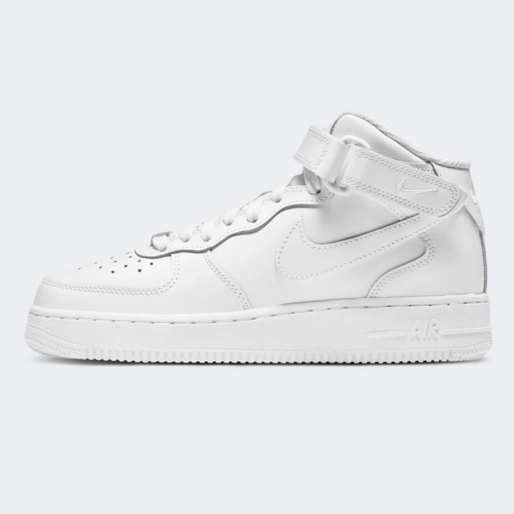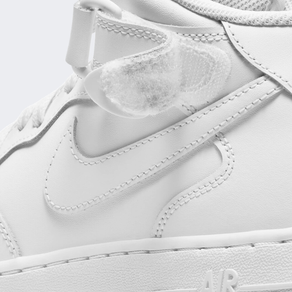 Модель Nike Air Force 1 вперше з’явилась у продажу ще у 1982 році, проте досі є полотном для дизайнерів. Зовнішній вигляд з часом зазнавав незначних змін, що зробило модель світовим стандартом вуличної культури та породило концепцію «ретро». Кеди Nike Air Force 1 Mid Le виготовлені з натуральної шкіри та прошитими накладками на верхній частині, які додають традиційного стилю, довговічності та підтримки. Перфоровані вставки відповідають за вентиляцію. Шнурівку доповнено липучкою, що гарантує кращу фіксацію виробу. Амортизація Nike Air забезпечує легкий комфорт протягом усього дня. Гумова підошва забезпечує міцне зчеплення з поверхнею. Загальна висота підошви становить 3 см. Модель рекомендована для дітей віком від 7 до 15 років.