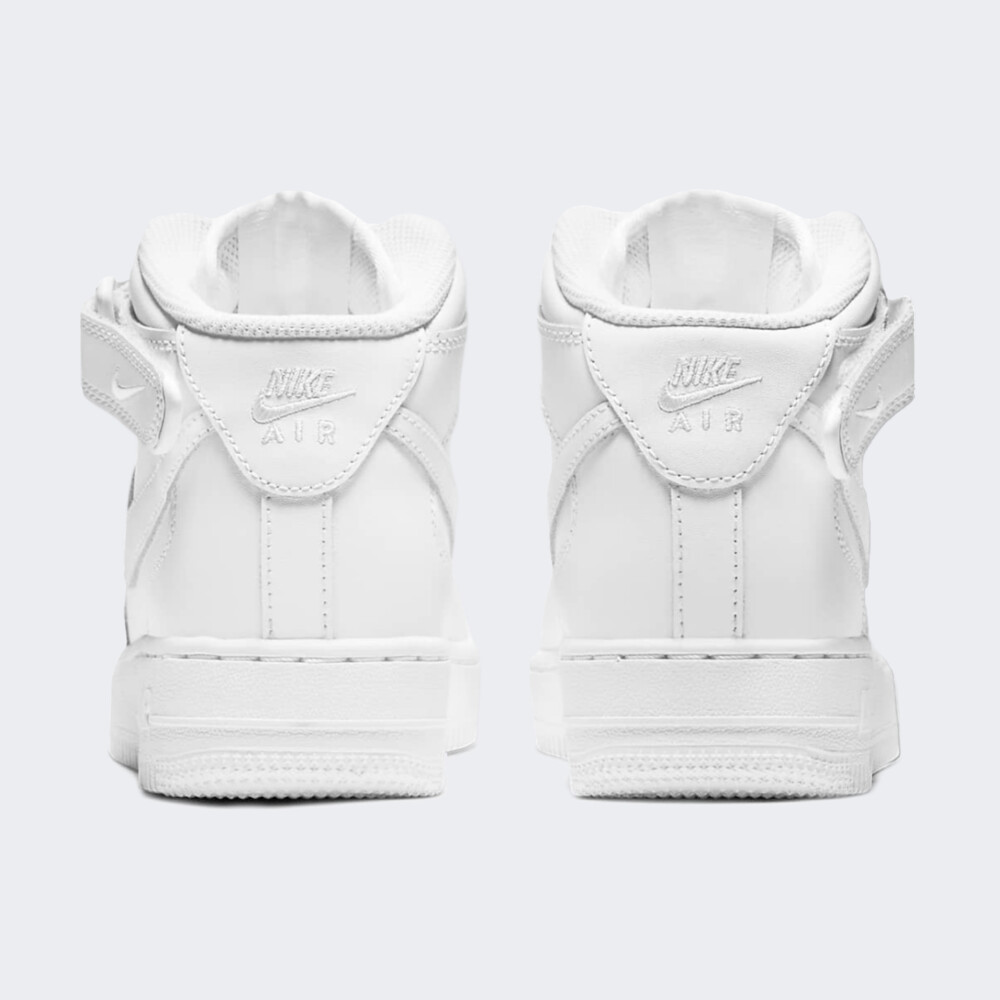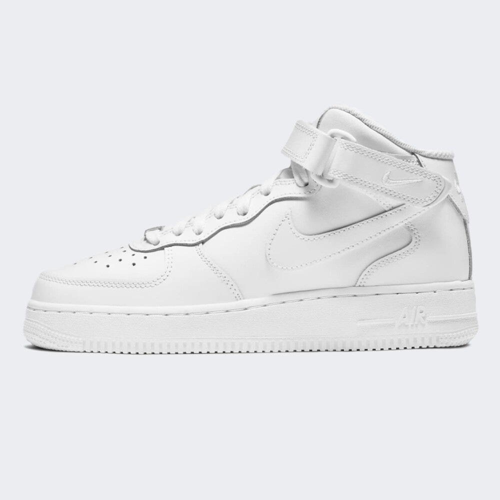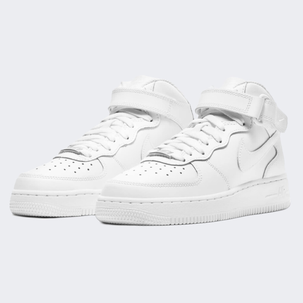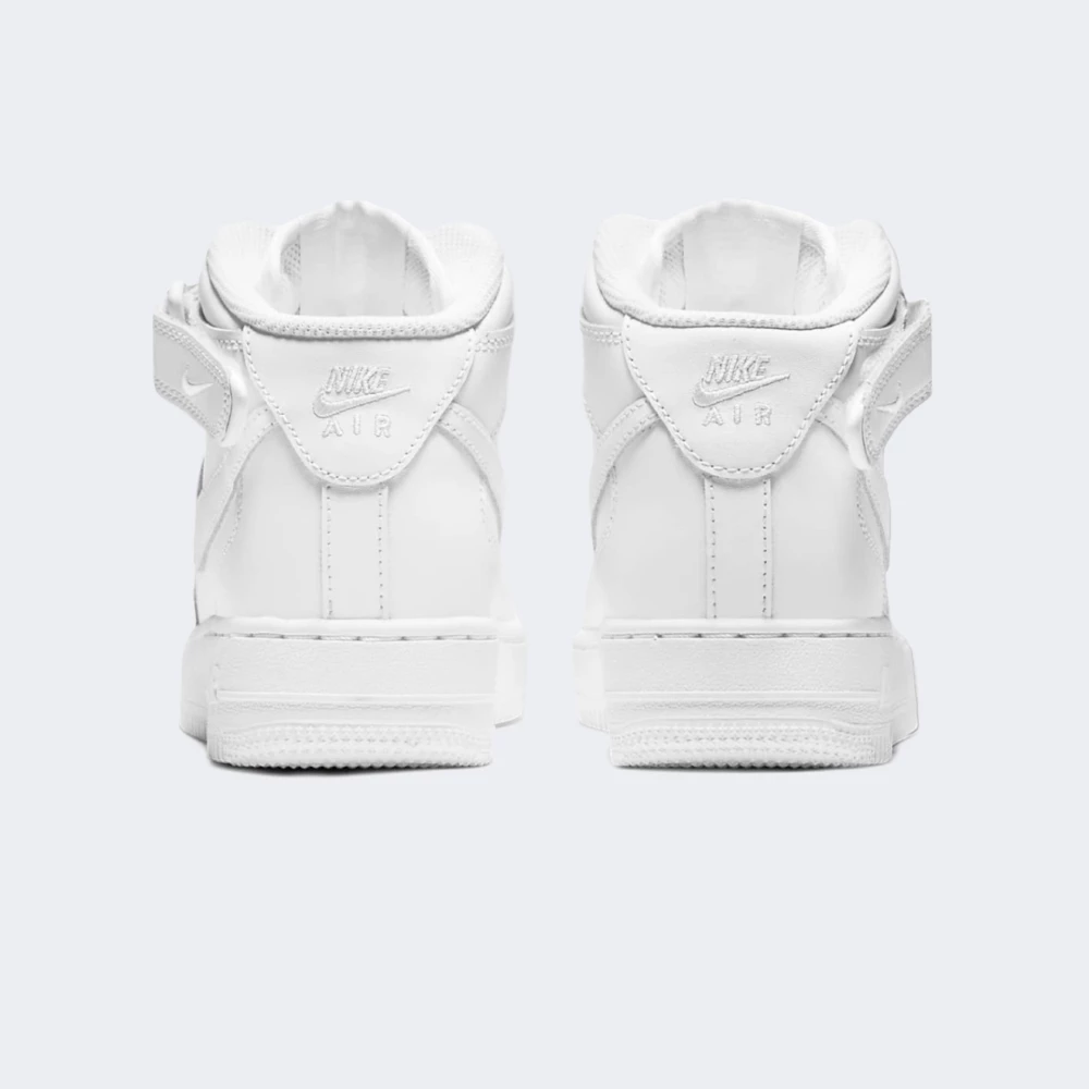 Модель Nike Air Force 1 вперше з’явилась у продажу ще у 1982 році, проте досі є полотном для дизайнерів. Зовнішній вигляд з часом зазнавав незначних змін, що зробило модель світовим стандартом вуличної культури та породило концепцію «ретро». Кеди Nike Air Force 1 Mid Le виготовлені з натуральної шкіри та прошитими накладками на верхній частині, які додають традиційного стилю, довговічності та підтримки. Перфоровані вставки відповідають за вентиляцію. Шнурівку доповнено липучкою, що гарантує кращу фіксацію виробу. Амортизація Nike Air забезпечує легкий комфорт протягом усього дня. Гумова підошва забезпечує міцне зчеплення з поверхнею. Загальна висота підошви становить 3 см. Модель рекомендована для дітей віком від 7 до 15 років.
