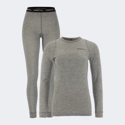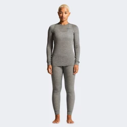 Комплект термобілизни Craft Wool Merino Set W стане Вашим надійним партнером для активних зимових днів. Він виготовлений з комбінування натуральних та синтетичних волокон, тому даруватиме приємне відчуття тепла навіть у мокрому стані. Мериносова вовна, маючи природні антибактеріальні властивості, дозволятиме залишатись у свіжості протягом довгих годин активного носіння. Ергономічний крій комплекту ідеально облягатиме тіло, проте не обмежуватиме рухів, щоб Ви не відчували жодних незручностей. Плоскі шви запобігатимуть подразненню шкіри, забезпечуючи максимальний комфорт, навіть під час тривалих занять. Термокофта має стильну круглу горловину та рукава реглан, що надаватиме зручності та спортивного вигляду. Термолегінси з еластичним поясом сприятимуть надійній посадці, щоб Ви могли впевнено виконувати будь-які рухи. Комплект декоровано логотипами, які підкреслюватимуть Вашу прихильність до активного зимового відпочинку та стилю Craft.