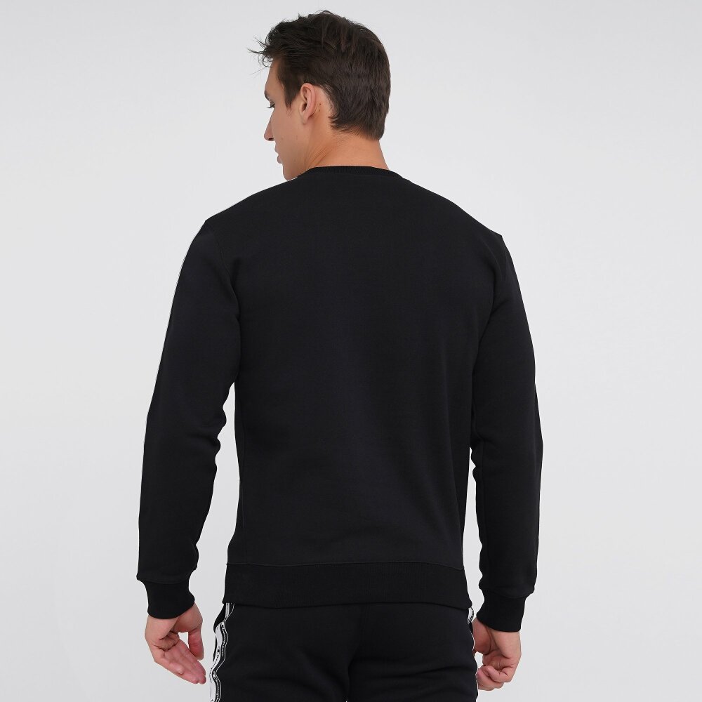 Світшот прямого крою декорований принтованими лампасами по рукавам. Виріб всередині утеплений. Довжина виробу на розмір М: 72 см, довжина рукава 65 см.