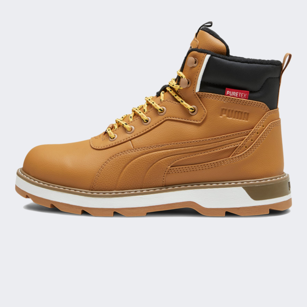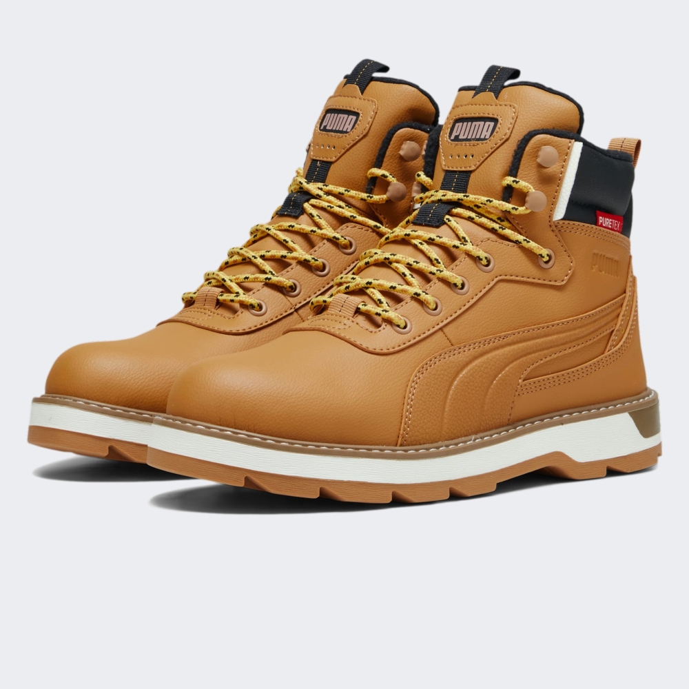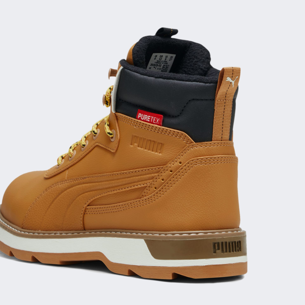 Черевики Puma Desierto v3 Puretex мають стриманий дизайн, що дозволить їх поєднувати з різними повсякденними образами у холодну погоду. Верх виготовлено з якісних синтетичних матеріалів та водонепроникної мембрани PureTex, що гарантуватиме Вам комфорт незалежно від погоди. Тепла підкладка добре зберігає тепло та допоможе створити оптимальний мікроклімат для стопи. Завищений силует зі шнурівкою допоможе надійно зафіксувати стопу, щоб Ви могли впевнено рухатись. Спеціальні петельки на п'яті та язичку значно полегшать процес одягання. Міцна гумова підошва гарантує необхідне зчеплення з поверхнями. Черевики декоровані логотипом та стильними смужками Formstrip, що підкреслить приналежність товару до бренду.