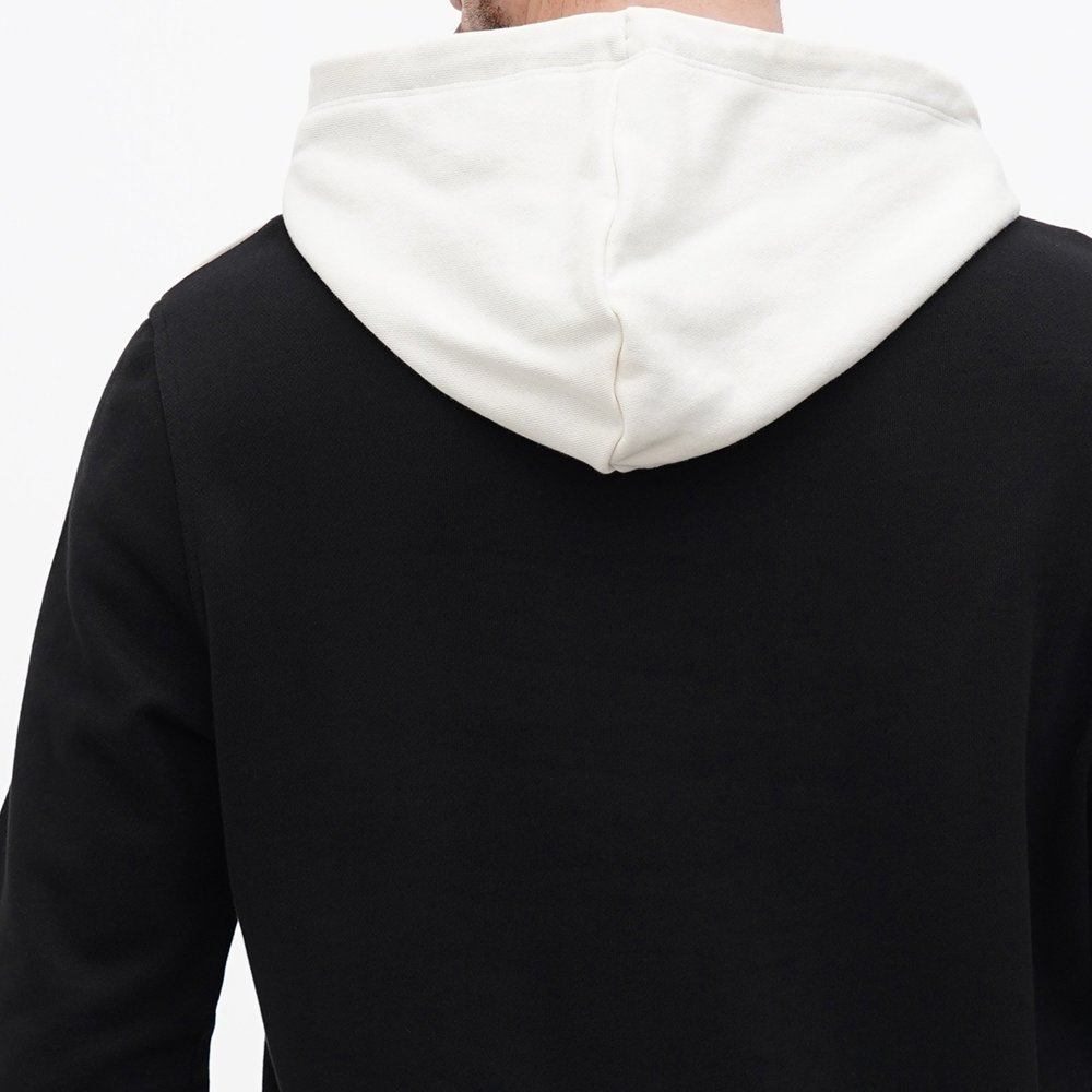 Виріб від відомого бренду прослужить довго та якісно. Худі чорного кольору без утеплення. Має вшитий контрастний капюшон, який зав'язується на шнурок, та контрастну накладну кишеню. Декорований логотипом бренду спереду. Добре зберігає свою первісну форму, має манжети знизу виробу та на рукавах. Модель оптимальна для щоденної носки і для зайнять спортом.
