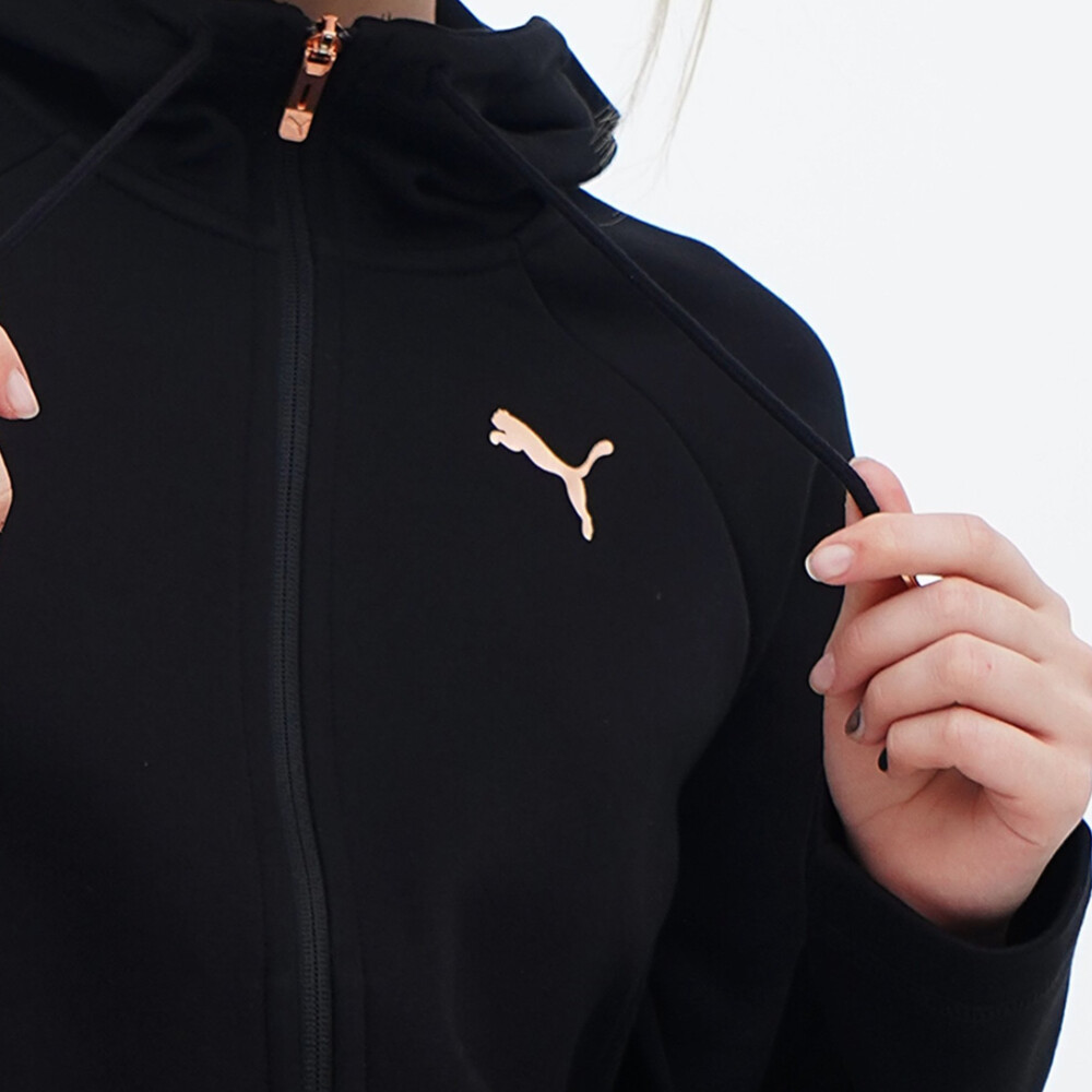 Толстовка Evostripe Full-Zip Women's Hoodie - це новий рівень Вашого гардеробу та сучасний погляд на улюблений класичний дизайн. Ефектну модель відрізняють акценти «металік» та подовжена закруглена спинка, що надає нотки розкоші. Технологія dryCELL відповідає за відчуття свіжості. Толстовка жіноча стандартної посадки. Капюшон із шнурком для регулювання (металеві наконечники). Кишені в бічних швах, світловідбивний логотип PUMA Cat – для видимості у темряві.
