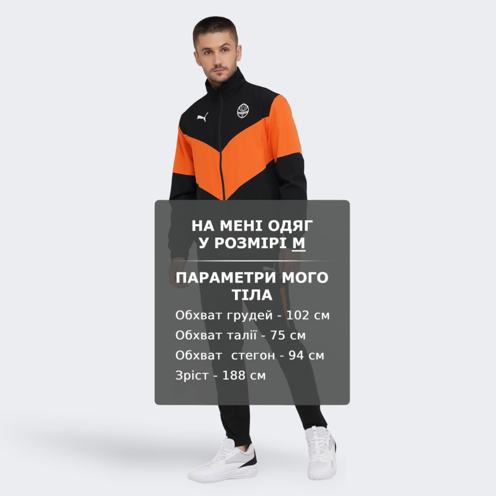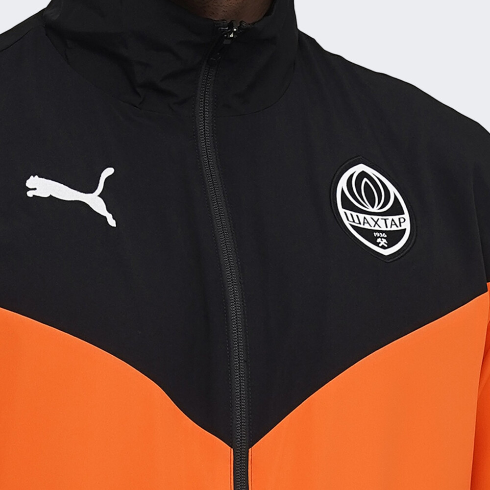 Важливою частиною глобальної стратегії Puma є розвиток футбольного напряму. Тому у 2020 р. було підписано п’ятирічний контракт з українською командою ФК «Шахтар». Проявіть свою прихильність до улюбленої команди разом з вітрівкою Puma FCSD Prematch Jkt. Вона виготовлена з водовідштовхувальної тканини, що допоможе Вам захиститись від негоди. Класичний крій не сковуватиме Ваших рухів, а еластичні манжети на рукавах та по низу вітрівки покращуватимуть фіксацію. Блискавка по всій довжині полегшить експлуатацію, а високий комір захистить Вашу шию. Бічні кишені дозволять мати при собі корисні дрібнички. Вітрівка декорована логотипом та емблемою клубу, що робить її невіддільною частиною спортивного гардероба вболівальника. Puma піклується про зниження впливу на довкілля, тому матеріал виробу містить перероблені волокна, що є одним з кроків до кращого майбутнього.