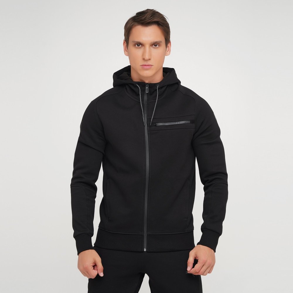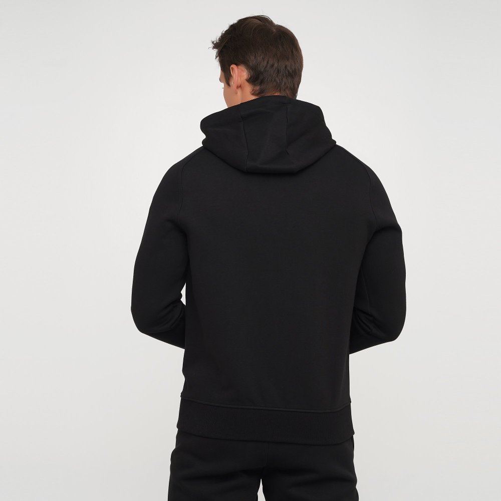Функціональна чоловіча толстовка без підкладки. Має три прорізні кишені, рукава та низ виробу з еластичними манжетами. Капюшон не знімається. На розмір М довжина виробу по спинці: 71 см.