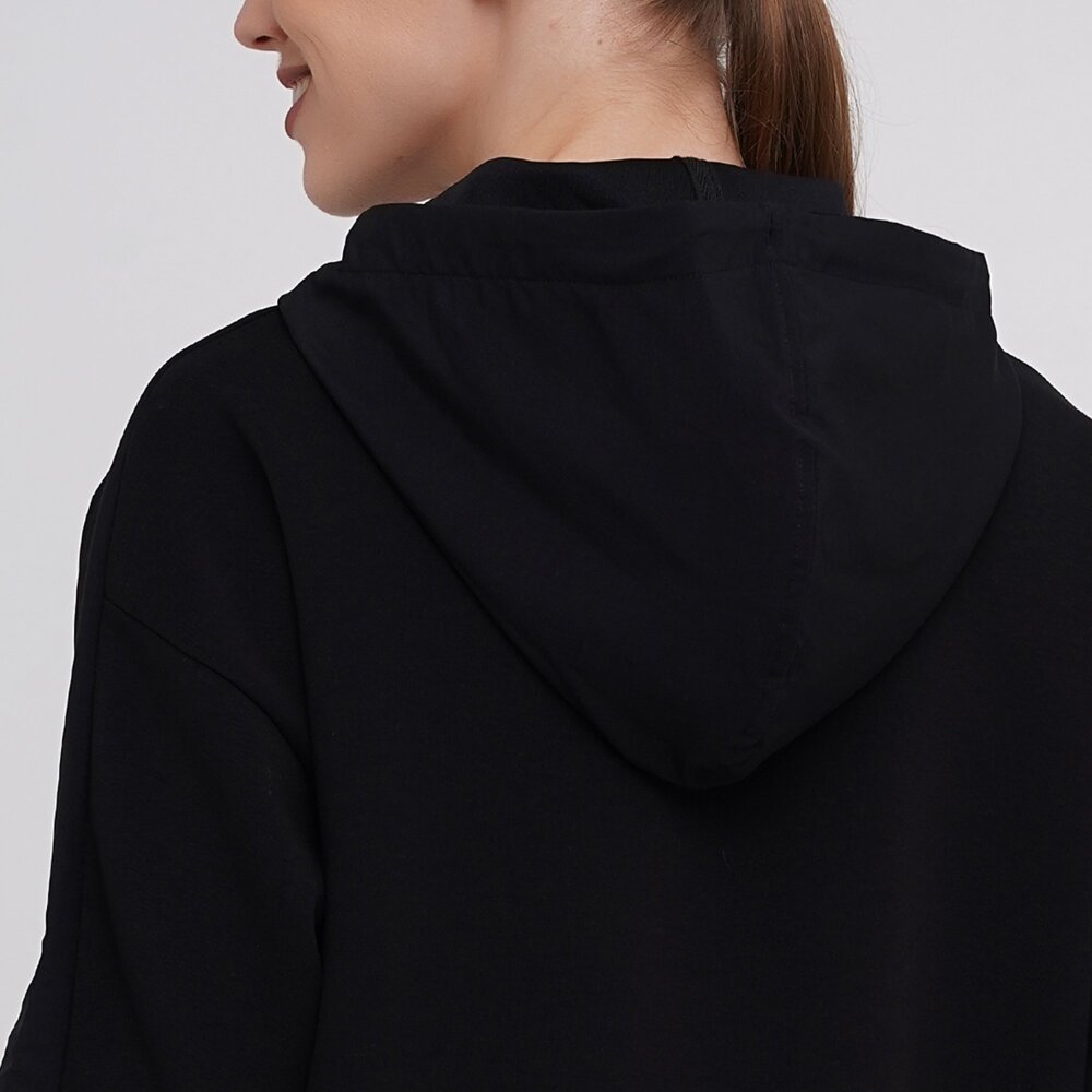 Стильний худі оригінального крою, має додаткову куліску в капюшоні, застібається на блискавку. Велика функціональна кишеня спереду, декорований фірмовою нашивкою. На розмір S довжина виробу по спинці: 62 см.