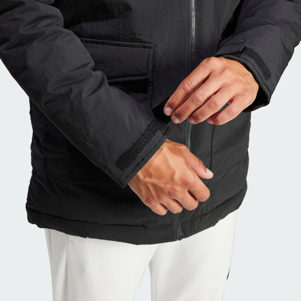 Колекція Adidas Sportswear поєднує в собі стиль та комфорт, створюючи ідеальні вироби для повсякденного носіння та активного способу життя. Куртка Adidas Ho Fur Pa натхненна містом та зробить Вас готовим до холодів. Виготовлена з якісних матеріалів, які мають водовідштовхувальне покриття, та з технологічним утеплювачем, який забезпечить тепло та затишок. Класичний крій не сковуватиме Ваших рухів, а липучки знизу рукавів запобігатимуть потраплянню холодного повітря всередину. Високий комір та капюшон захистять від несприятливих проявів погоди, а знімне хутро на капюшоні дозволяє створити декілька образів. Нагрудна та бічні кишені дозволять мати при собі потрібні дрібнички. Лаконічний дизайн доповнено логотипом, який підкреслить якість куртки. Adidas піклується про зниження впливу на довкілля, тому модель виготовлена з використанням низки перероблених матеріалів і вторинної сировини