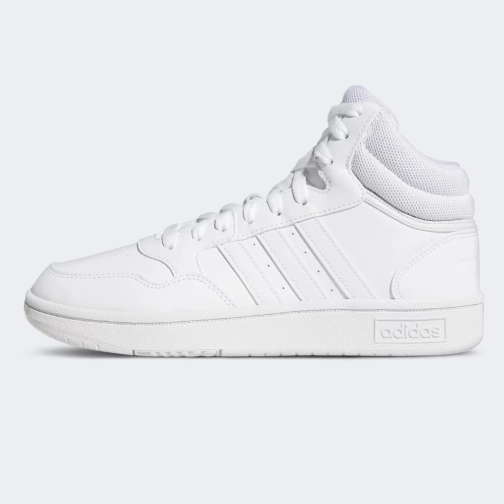 Колекція Adidas Sportswear змішує спорт і стиль, в ній новітні розробки поєднуються з естетичним зовнішнім виглядом, комфортом та універсальністю. Товари колекції підходять тим, хто хоче мати гарний вигляд та почуватись вільно. Кеди Adidas Hoops 3.0 Mid відтворюють баскетбольну класику у повсякденному житті. Завищений силует верху виготовлено з поєднання текстилю та синтетичною шкірою, що гарантує комфортні відчуття та легкість у догляді. Перфоровані отвори відповідають за циркуляцію повітря всередині взуття. Плоска гумова підошва надає відмінне зчеплення з поверхнями та робить їх більш стійкими до зношування. Декоровані культовими трьома смужками та логотипом, який вказує на приналежність моделі до бренду.