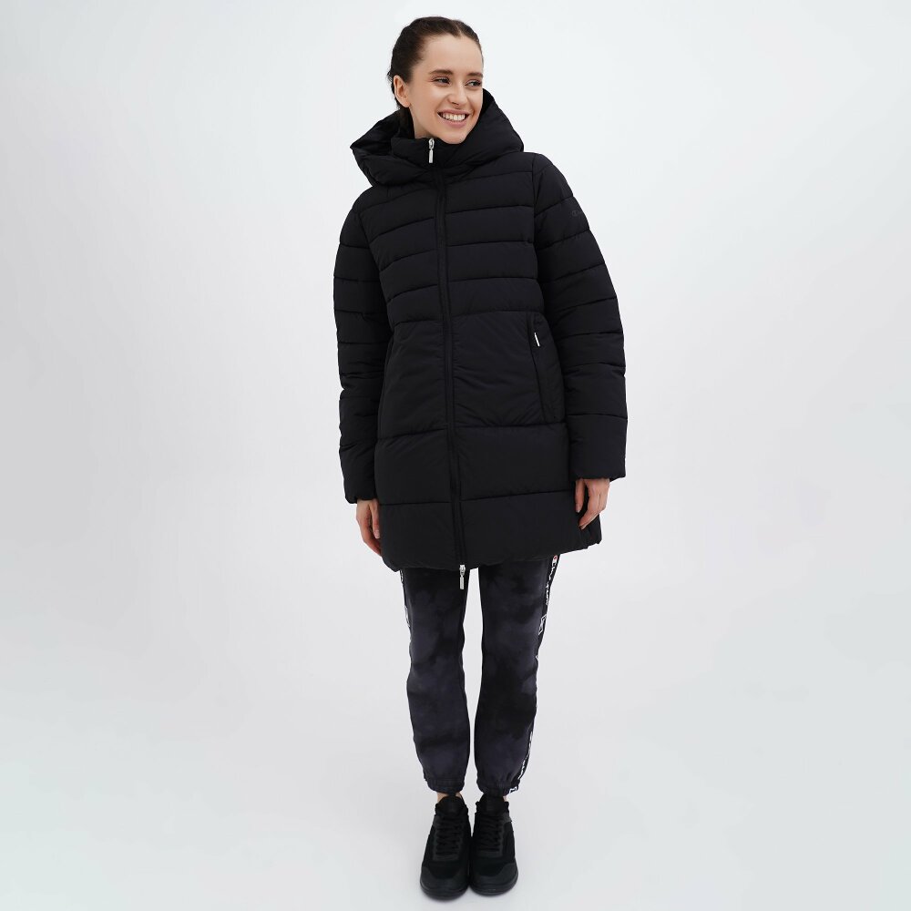 Тепла зимова куртка вільного крою. Куртка на підкладці, застібається на подвійну блискавку по всій довжині. Куртка має теплий капюшон, що знімається. Високий воріт-стійка для максимального комфорту і збереження тепла. Глибокі прорізні кишені на блискавках з обох боків. Куртка із стьобанью поверхнею, що не пропускає вологу всередину. Декорована логотипами фірми в тон основного кольору.