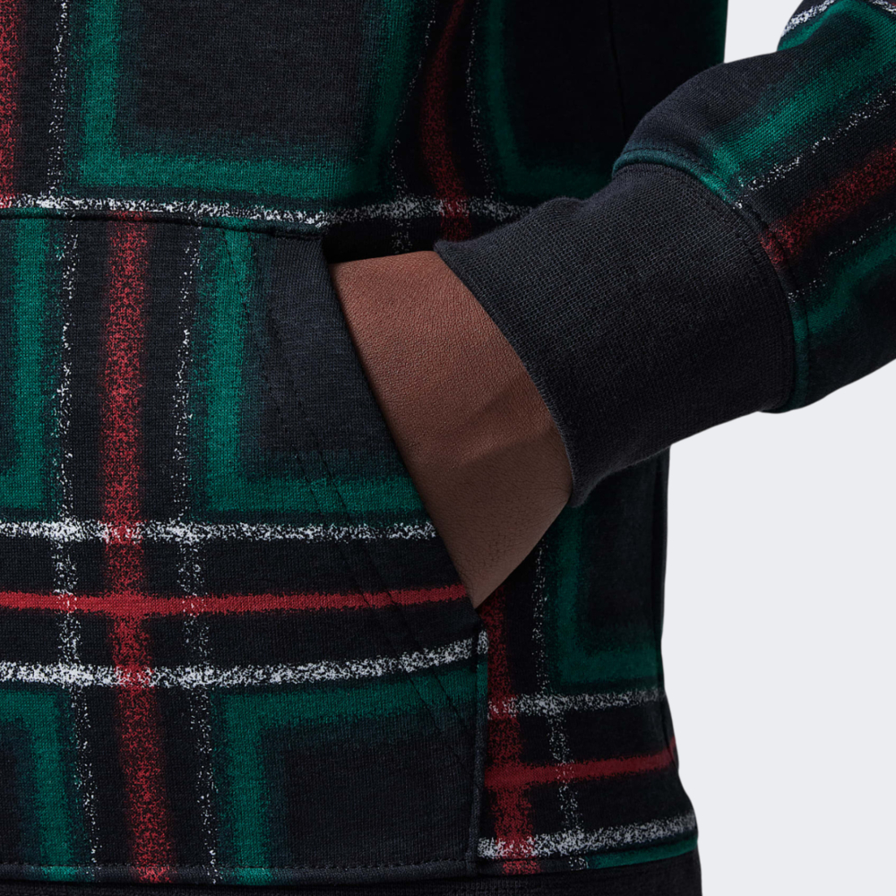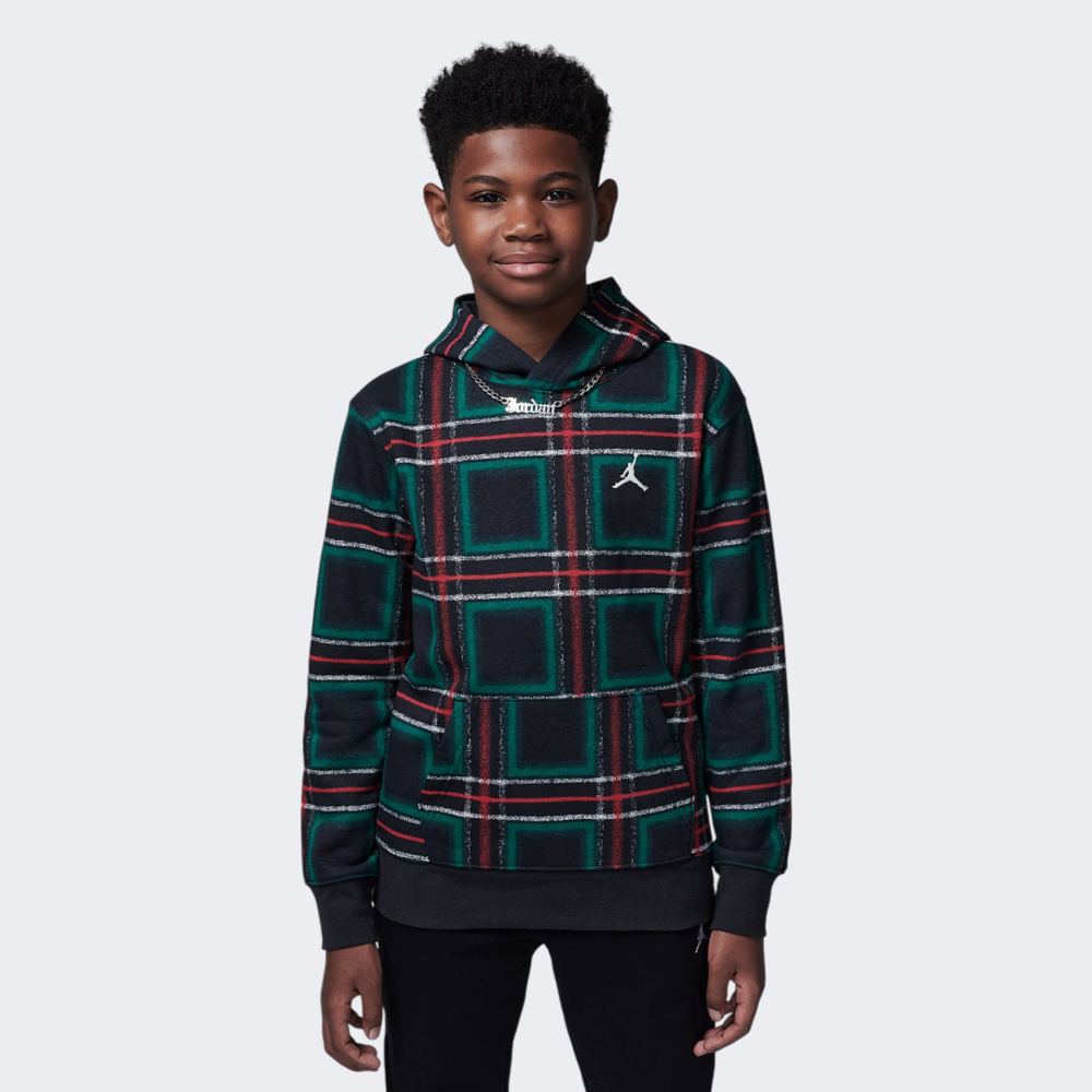 Відомий баскетболіст Майкл Джордан та легендарна компанія Nike створили всесвітньо відомий бренд Jordan, який досі має небувалу популярність. Вироби бренду асоціюється з успіхом та перемогами. Кофта Jordan Jdb Mj Brooklyn Ess Hldy Flc P додасть у повсякденні образи Вашої дитини нотки різдвяних свят, що гарантуватиме радісний настрій на весь день. Вона виготовлена з флісового матеріалу, який даруватиме відчуття затишку протягом усього дня. Вільний крій зі злегка спущеними плечовими швами не сковуватиме дитячих рухів, дозволяючи насолоджуватись кожною пригодою. Манжети на рукавах й по низу кофти покращуватимуть фіксацію, тому запобігатимуть проникненню прохолодного повітря. Капюшон сприятиме додатковому захисту від несприятливих проявів погоди, а зручна кишеня кенгуру дозволить мати при собі корисні дрібнички та при потребі зігріти руки. Кофта декорована унікальними зображеннями натхненими різдвяним стилем, що додаватиме відчуття свята кожного дня. Модель рекомендована для дітей віком від 7 до 15 років.