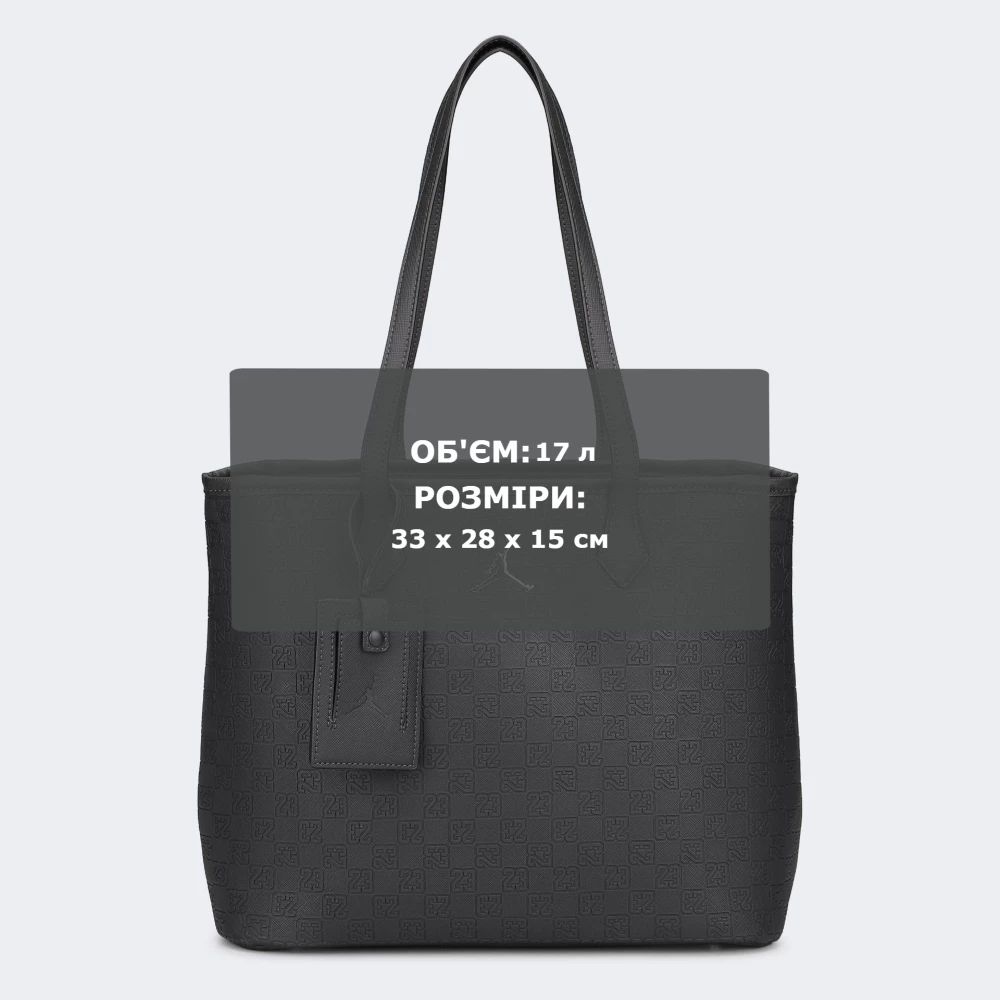Майкл Джордан і легендарна компанія Nike об’єдналися, щоб створити культовий бренд Jordan, який символізує перемогу, стиль та бездоганну якість. Його продукція асоціюється з успіхом і впевненістю, а кожен виріб відображає дух чемпіона. Сумка Jordan Jam Monogram Tote Bag — це втілення сучасної елегантності й спортивної харизми, яка стане яскравим акцентом у Вашому щоденному або дорожньому образі. Вона виготовлена з гладкої штучної шкіри, яка не лише виглядає стильно, а й легко очищується — достатньо лише протерти вологою тканиною. Основне відділення на блискавці має захищену кишеню для ноутбука та достатньо простору для всіх необхідних речей, тож Ви можете бути впевнені, що все важливе завжди з Вами. Довгі ручки дозволяють зручно носити сумку як у руці, так і через плече — обирайте той варіант, який пасує до Вашого настрою та стилю. А багажна бирка, яка йде в комплекті, стане незамінним аксесуаром під час подорожей, допомагаючи легко впізнати свою сумку серед безлічі інших. Тиснення у вигляді монограми по всій поверхні та культовий логотип Jumpman додають фірмової естетики Jordan, яка говорить сама за себе — Ви обираєте впевненість і стиль без компромісів.