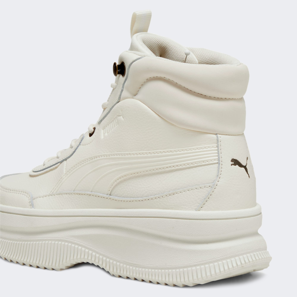 Черевики Puma Mayra втілюють у собі гармонію класичного стилю та сучасної функціональності, створюючи ідеальний баланс між елегантністю та практичністю. Їх верх виготовлено з поєднання натуральної та синтетичної шкіри, яка не лише гарантуватиме легкість у догляді, але й витримуватиме Ваш активний ритм життя. Завищений силует зі шнурівкою та м'яким коміром даруватиме відчуття надійності та підтримки протягом усього дня, а петелька на язичку полегшуватиме взування. Устілка з ефектом пам'яті надаватиме м'якості кожному Вашому кроку, що запобігатиме швидкій втомі ніг. Гумова підошва сприятиме стійкості та зчепленню з поверхнями, тому Ви зможете впевнено підкорювати міські вулиці чи затишні парки. Черевики декоровано стильними смужками Formstrip, які підкреслюватимуть Вашу відданість легендарному бренду. Puma піклується про зниження впливу на довкілля, тому верх містить щонайменше 20%, а підошва принаймні 10% перероблених матеріалів, що є одним з кроків до кращого майбутнього.