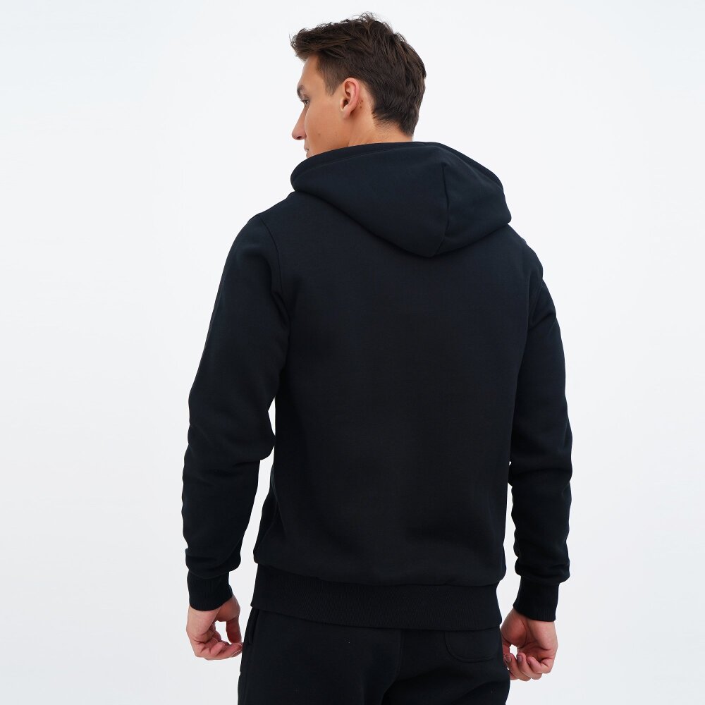 Чоловіча толстовка зручного крою, основна застібка - блискавка. Капюшон стаціонарний, манжети по низу виробу та на рукавах. Спереду дві глибокі накладні кишені. Виріб виготовлений із якісного трикотажу із високим вмістом бавовни. Формостабільний, добре зберігає кольори. Можна прати в пральній машині. Спереду декорований лаконічним логотипом бренду.