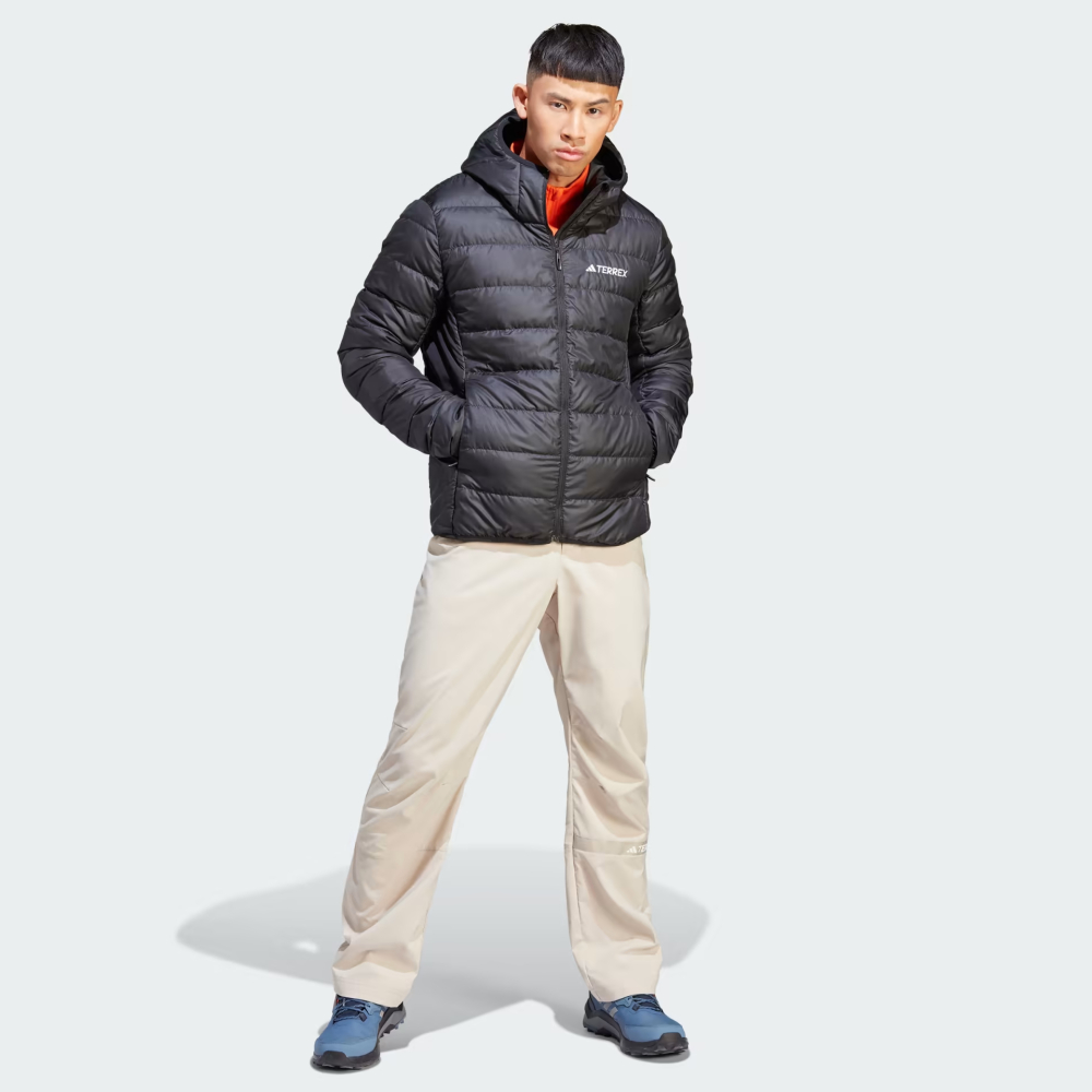 Пуховик Adidas Multi Down Jkt має легку вагу, що дозволить його брати з собою в походи, тому коли будете на вершині гори Вам не доведеться тремтіти від холоду і Ви зможете милуватися краєвидом. Виготовлений з якісних матеріалів та з гібридним поєднанням пуху й синтетичного утеплювача, що забезпечуватимуть тепло та затишок у прохолодні дні. Приталений крій дозволить мати гарний вигляд та не сковуватиме при цьому Ваших рухів, а тонкі еластичні манжети запобігатимуть потраплянню холодного повітря всередину. Високий комір та капюшон захистять Вас від несприятливих проявів погоди, а бічні кишені на блискавках дозволять мати при собі корисні дрібнички та зігріти руки, коли виникне така потреба. Adidas піклується про зниження впливу на довкілля, тому матеріал виробу містить щонайменше 70% перероблених волокон, що є лише одним з рішень, які допомагають покласти край пластиковим відходам.