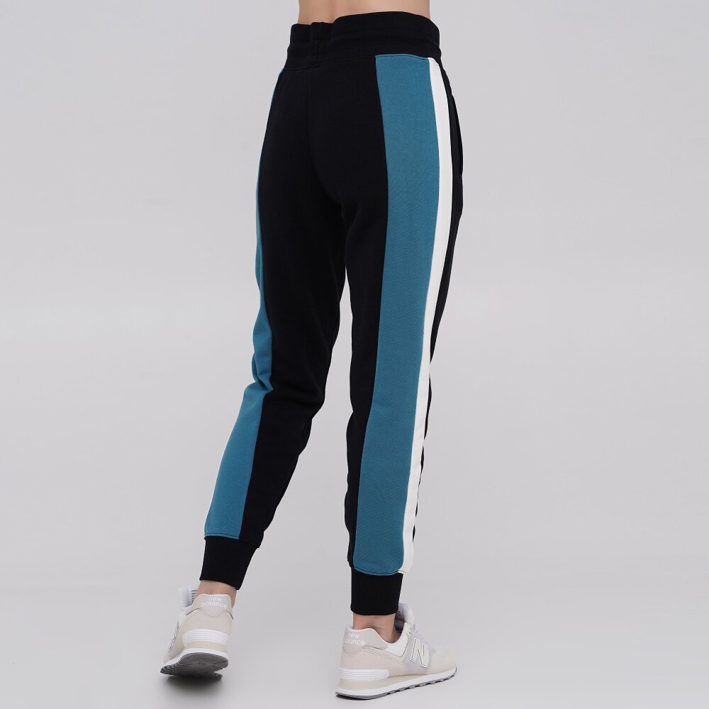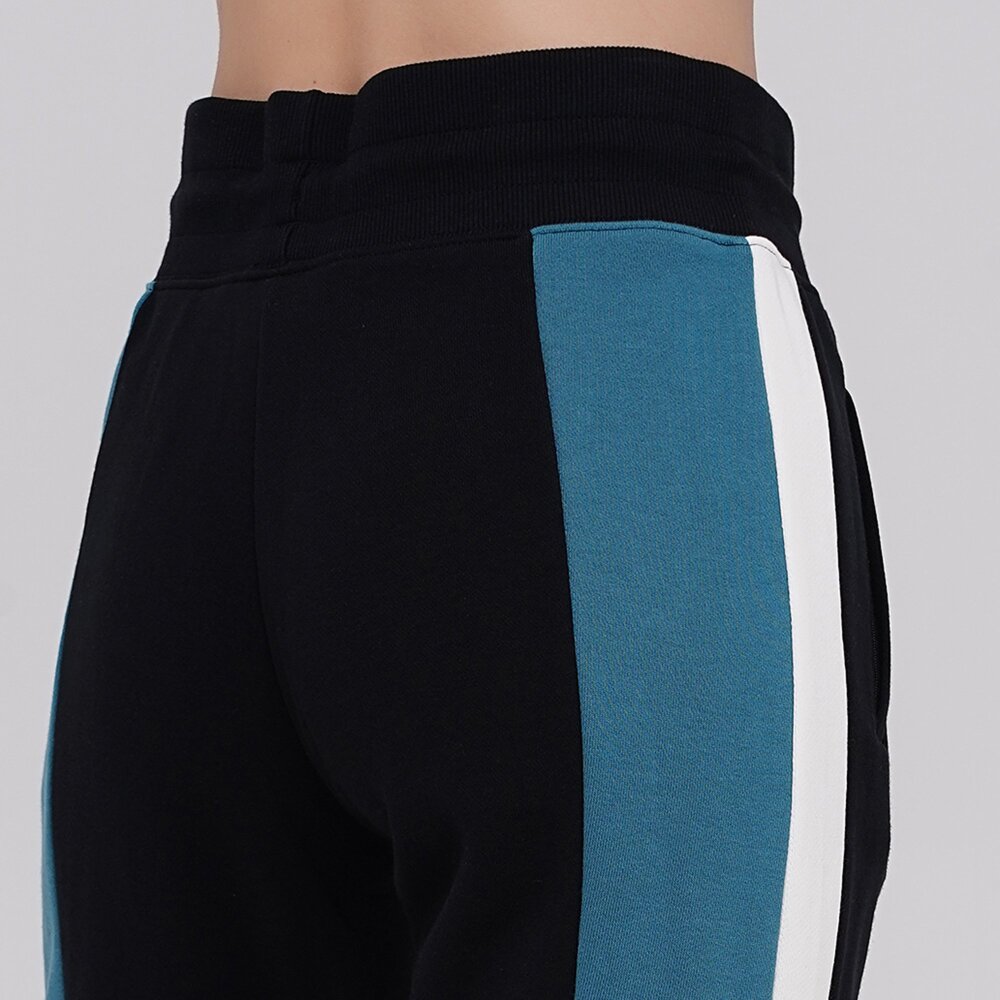 Комфортні жіночі повсякденні брюки-джогери з еластичними манжетами по низу. Резинка та текстильний шнурок на талії забезпечують зручність посадки. Штани виготовлені зі 100% бавовняного трикотажу. Декоровані контрастними лампасами та вишитим логотипом бренду. З боків - кишені зі зручним хватом.