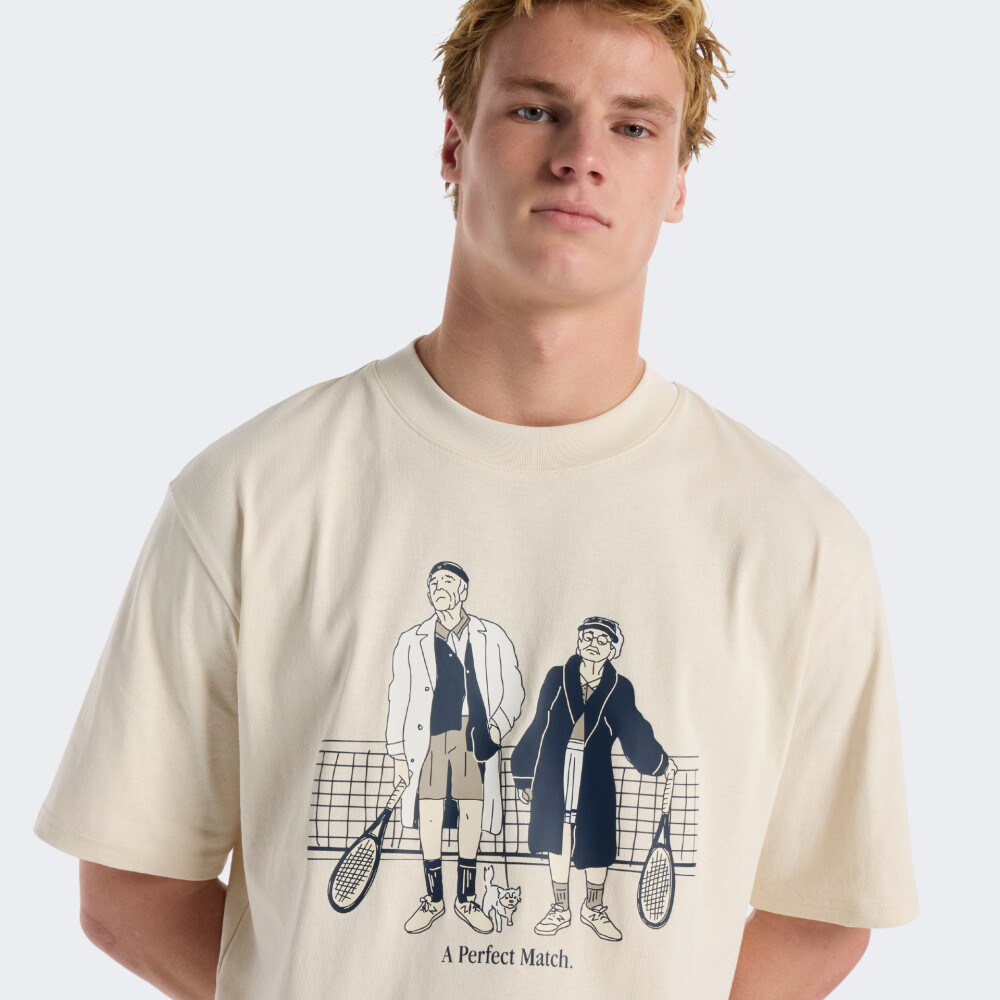 Футболка New Balance A Perfect Match Tennis T-Shirt — це стиль із посмішкою, іронією та великою любов’ю до деталей. Вона створена для тих, хто цінує індивідуальність, не боїться бути собою та вміє вловлювати настрій у дрібницях. Виготовлена з м’якої бавовняної тканини, тому дарує відчуття комфорту з перших хвилин. Вільний крій зі спущеними плечовими швами дозволяє рухатися легко й невимушено, а класична кругла горловина з м’якою внутрішньою стрічкою запобігає подразненням навіть при тривалому носінні. Та головне — це принт, який не залишить байдужим. На ньому — тенісний корт, джентльмен й пані. Вони — «ідеальна пара»: без пафосу, без зайвих зусиль, просто двоє, які знайшли ритм у грі та в житті. І так само легко, як тримають ракетки, вони тримають стиль. Футболка пропонує ідеальний баланс між комфортом і самовираженням, підкреслюючи Ваш характер.