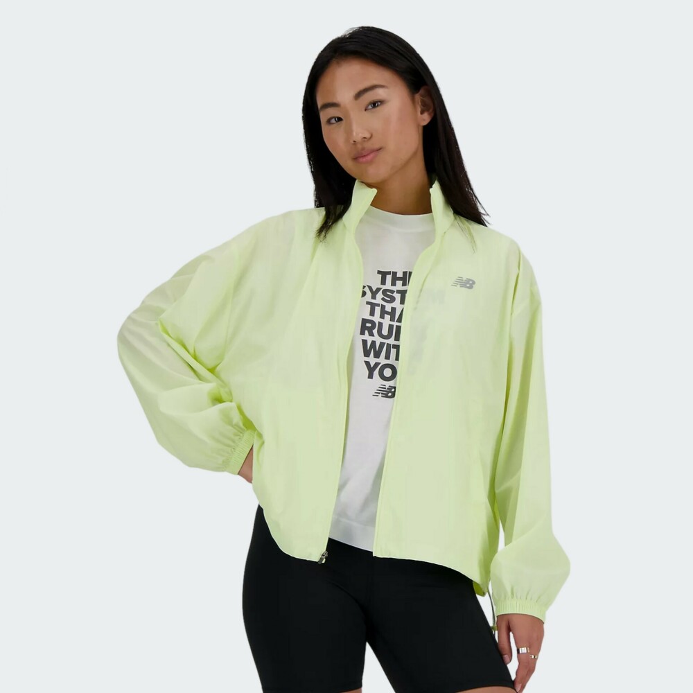 Вітрівка New Balance Jacket NB Athletics дозволить Вам відчувати себе затишно під час тренувань на свіжому повітрі, навіть у вітряну та вологу погоду. Вона виготовлена з легкої тканини, яка захистить Вас від негоди. Вільний крій зі злегка спущеними плечовими швами не сковуватиме Ваших рухів, а манжети на рукавах та текстильний шнурок знизу покращуватимуть фіксацію. Капюшон за потреби приховується у комір, що дозволить стилізувати вітрівку як Вам потрібно. Бічні кишені вмістять корисні під час тренувань дрібнички. Вітрівка декорована світловідбивним логотипом, який зробить Вас більш помітною в умовах поганого освітлення. Вона спаковується у кишеню, тому її зручно брати з собою. New Balance піклується про зниження впливу на довкілля, тому матеріал містить перероблені волокна.
