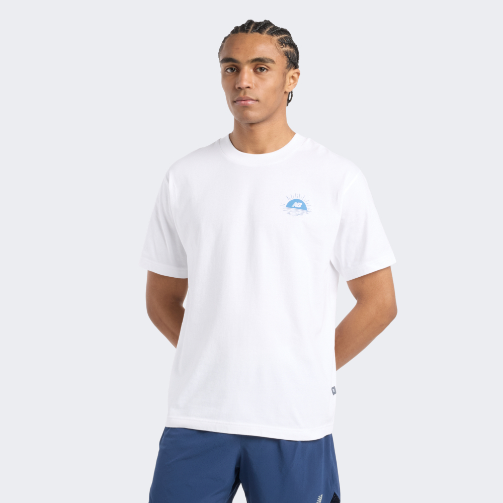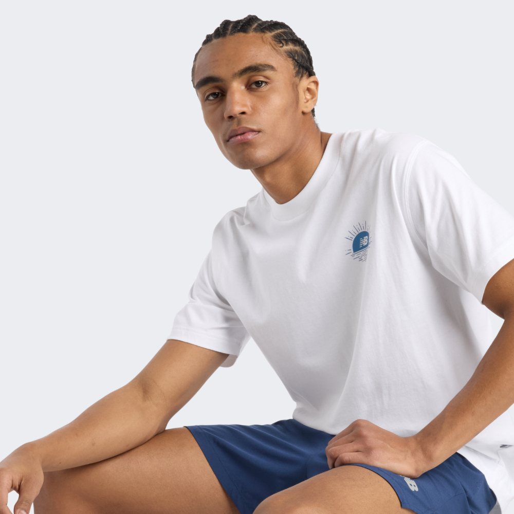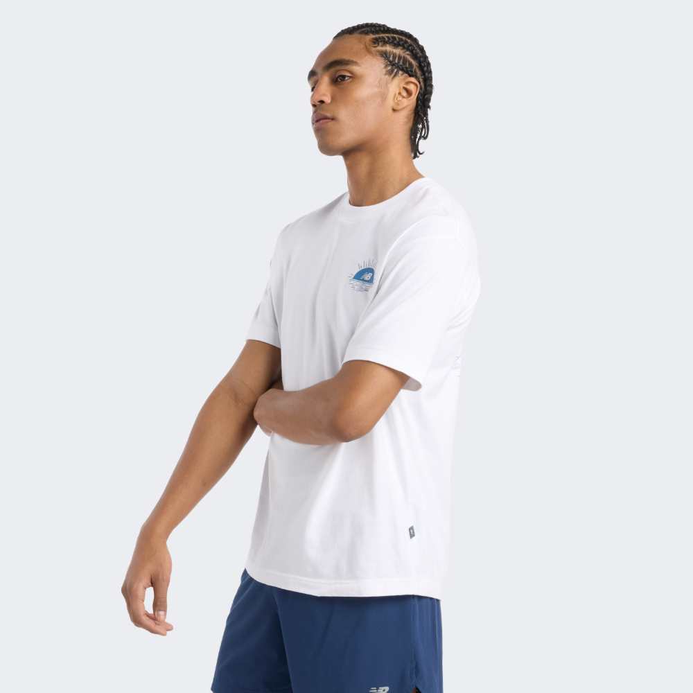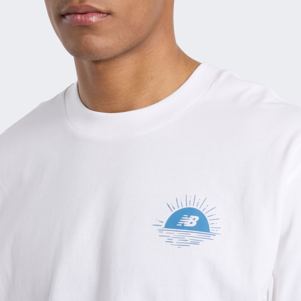 Футболка New Balance Lobster Boat T-Shirt — це запрошення вирушити в подорож, навіть якщо Ви просто крокуєте знайомими вулицями. Вона наповнена атмосферою морських пригод і спокою, який дарує горизонт. М’яка бавовняна тканина приємно прилягає до тіла, забезпечуючи комфорт незалежно від того, чи це неспішна прогулянка вздовж узбережжя, чи метушливий день у місті. Вільний крій зі спущеними плечовими швами гарантує повну свободу рухів, щоб Ви могли зосередитись на важливих для Вас моментах. Кругла горловина з м’якою внутрішньою стрічкою забезпечує додаткову зручність, захищаючи шкіру від натирання. Справжній настрій футболки — в деталях ілюстрації на спині. Там — рибальський човен, що тихо погойдується на хвилях. Лінії малюнка ніби зроблені вручну: снасті, чайки, вода — усе це створює візуальний спокій і водночас викликає жагу до відкриттів. Логотип New Balance на борту човна вдало вплетений у сюжет, залишаючи нагадування про баланс, до якого прагне кожен мандрівник — як зовні, так і всередині.