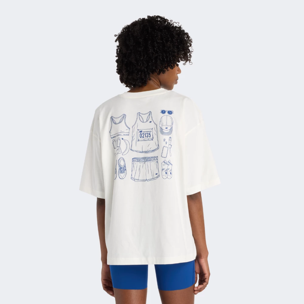 Футболка New Balance Outfit Layout T-Shirt — це поєднання спортивного духу та сучасного стилю, яке надихає на рух і додає образу особливого шарму. М’яка натуральна бавовна ніжно прилягає до тіла, забезпечуючи комфорт упродовж усього дня — від прогулянок містом до активного відпочинку. Вільний крій зі спущеними плечовими швами дарує відчуття легкості та свободи рухів, створюючи невимушений силует, який виглядає сучасно. Продумана кругла горловина зі спеціальною внутрішньою стрічкою додає зручності, адже захищає від подразнень під час тривалого носіння. Головний акцент футболки — оригінальний графічний принт із зображенням марафонського спорядження на спині, що нагадує про силу витривалості, характеру та любові до спорту. Невелике зображення кросівок на грудях підкреслює любов до культового бренду, який вже давно став символом динамічного життя.