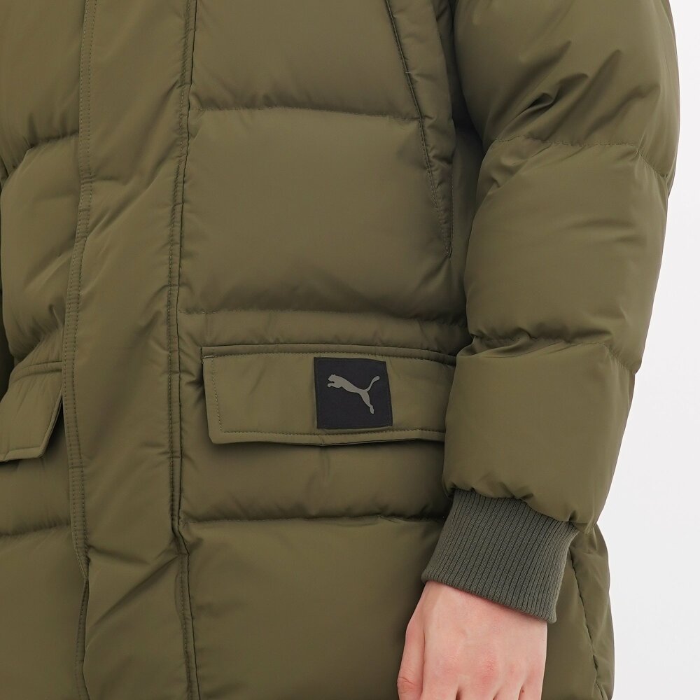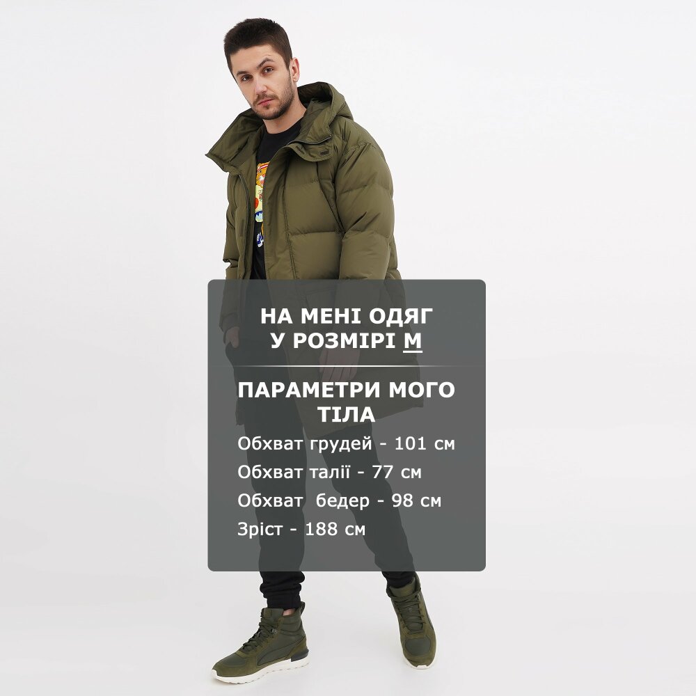 Пухова куртка поєднує в собі захист від негоди та стильний ультрасучасний силует. Має збільшений об'ємний незйомний капюшон та опущені плечі. Укомплектований погодостійкими елементами, такими як кишені на флісовій підкладці та захисний штормовий клапан по всій довжині. Основна застібка - блискавка та липучки, еластичні манжети на рукавах. ЛоготипPUMA Cat на лівій кишені.