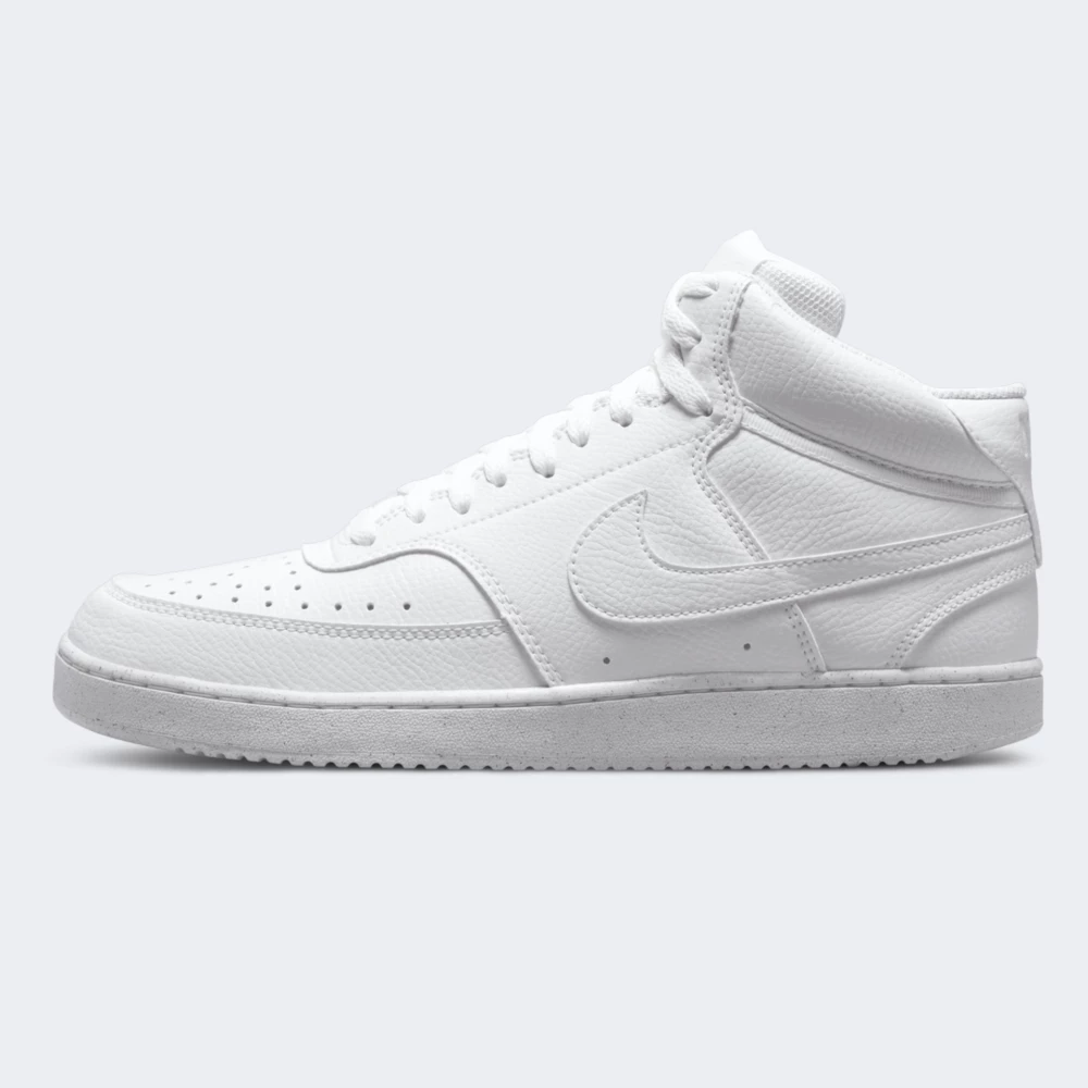 Кеди Nike Court Vision Mid Next Nature входять до серії Court Vision, яка поєднує баскетбольний стиль 80-х років з сучасними технологіями, роблячи їх ідеальним варіантом для повсякденного носіння. Верх виготовлений з якісної синтетичної шкіри, що гарантує стійкість до зношування. Перфоровані вставки у верхній частині забезпечують вентиляцію повітря всередині, що робить їх комфортними навіть під час тривалих прогулянок. Злегка завищена конструкція і м'який комір навколо щиколотки подарують Вашим ногам підтримку, гарантуючи при цьому відмінну фіксацію. Плоска гумова підошва гарантуватиме відмінне зчеплення з поверхнями. Дизайн кед дозволяє легко поєднувати їх з різним одягом і створювати стильні образи для будь-якої ситуації. Nike піклується про зниження впливу на довкілля, тому матеріал верху містить щонайменше 20% перероблених матеріалів, що є одним з кроків до кращого майбутнього.